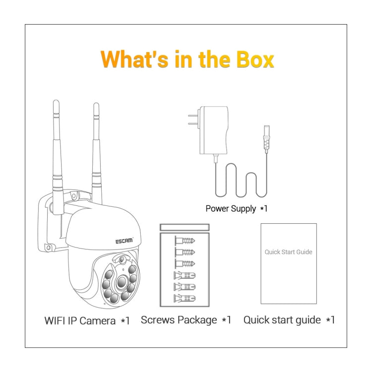 1 x Camera 1 x User Manual 1 x Power Charger 1 x Screws Set |