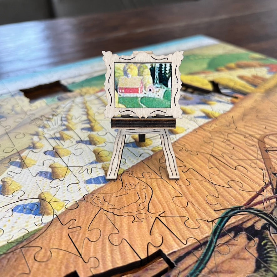 Experience the beauty of the countryside with our Fall Plowing wooden jigsaw. This 250-piece puzzle features irregular and whimsical shaped pieces, adding an element of surprise to your puzzle-solving journey. Immerse yourself in a scene of a plowed field, rolling hills, and hay bales. Perfect for puzzle enthusiasts and nature lovers alike.