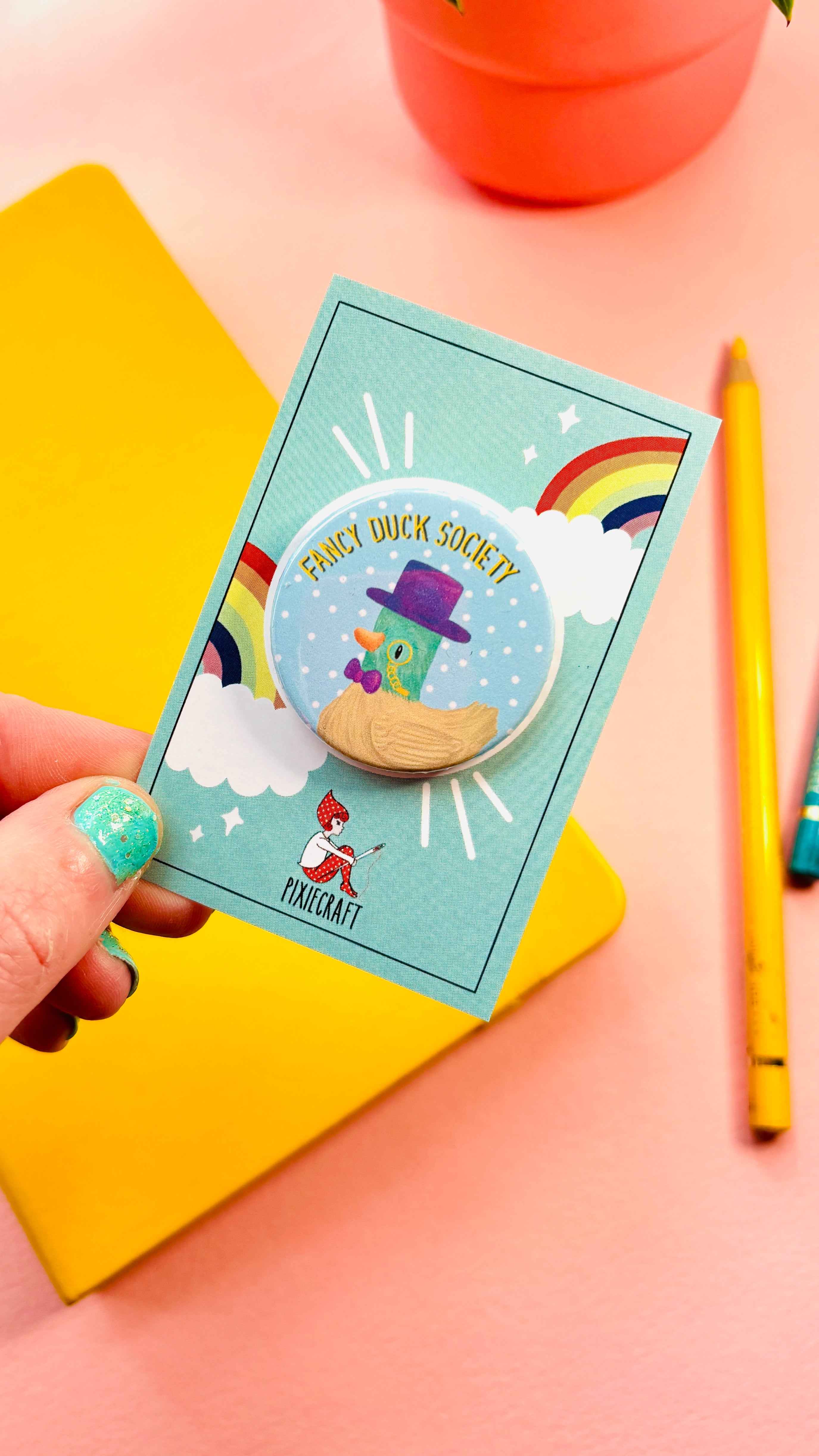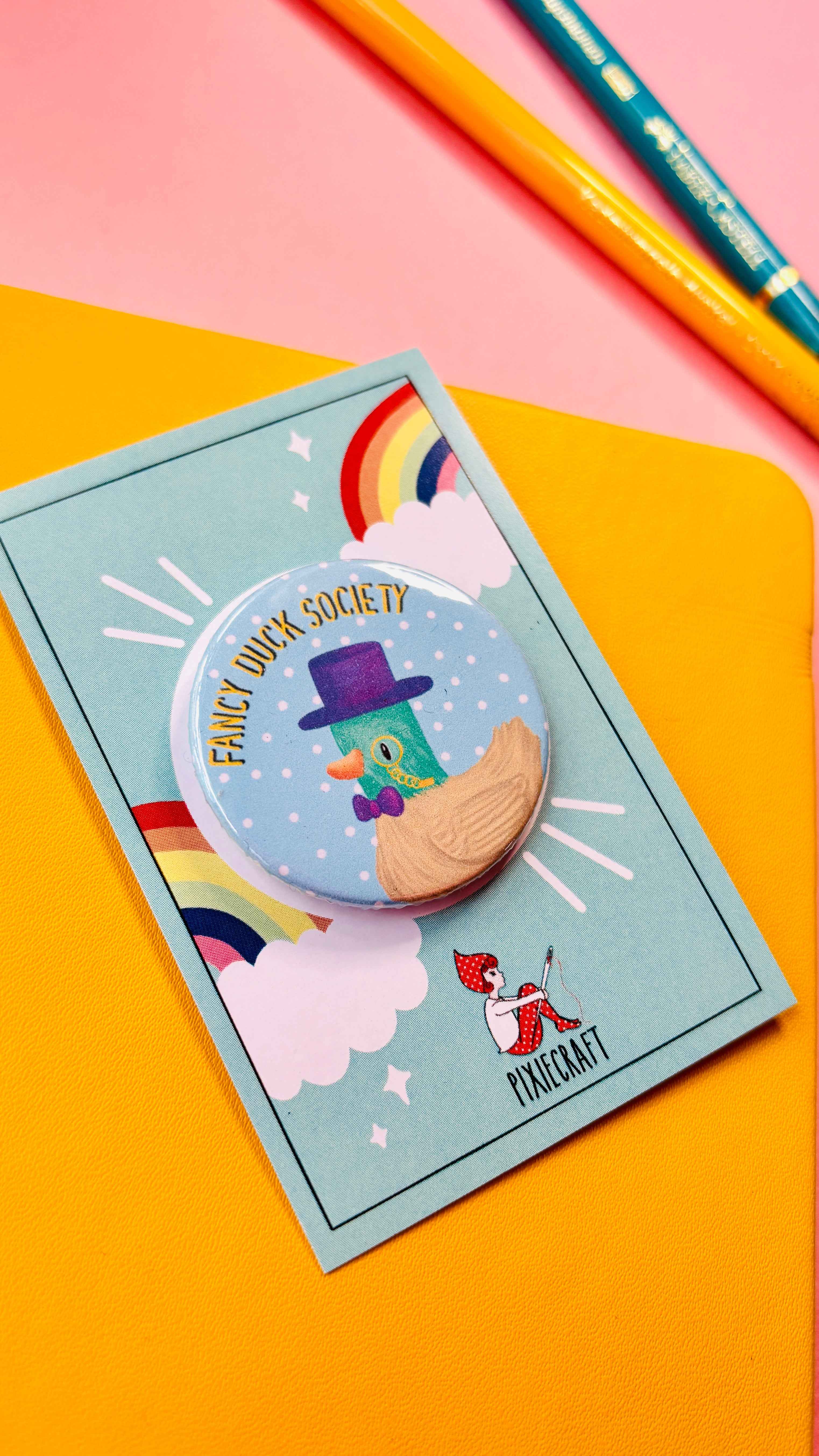Fancy Duck Society Cute Pin Badge or Magnet- Multiple Options Available