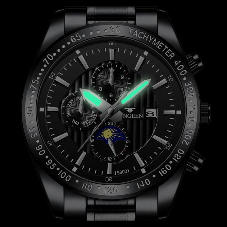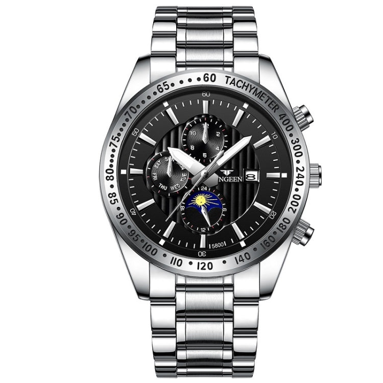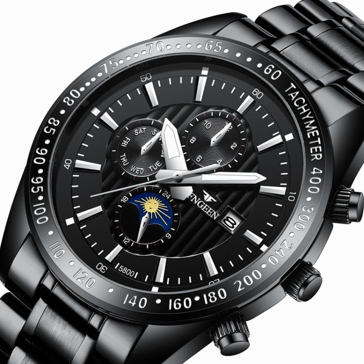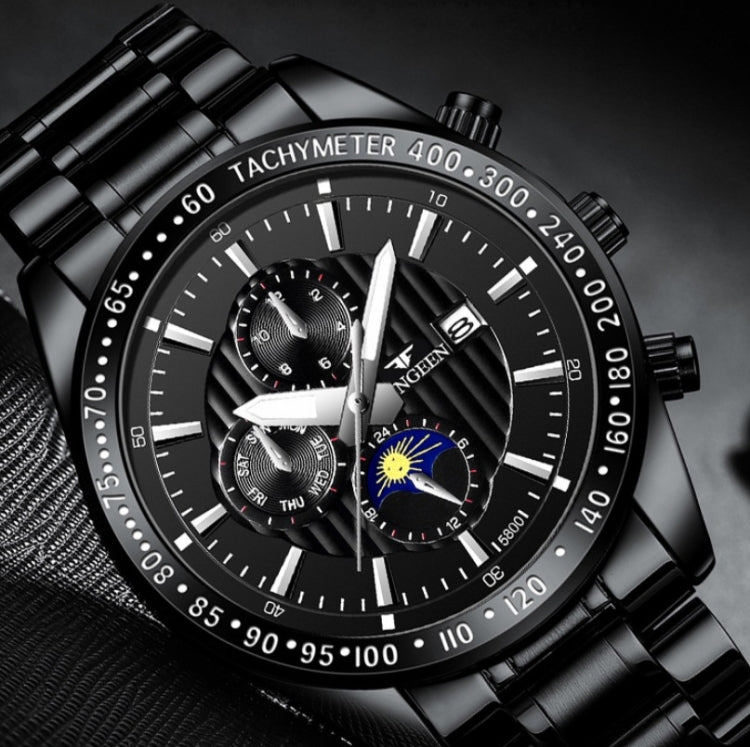 FNGEEN 5800 Men Three Eyes and Six Pins Watch Student Quartz Watch, Black Steel Black Surface, Black Steel White Surface, White Steel Black Surface, White Steel White Surface, Black Leather Black Steel Black Surface...