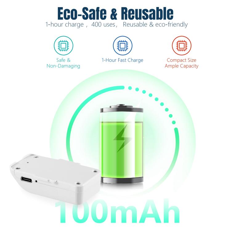 3. Max Load and Battery Life: With a maximum payload capacity of approximately 100g, the device features a built-in 100mAh battery that charges fully in just 1 hour. Once charged, it supports around 400 uses on a single charge.