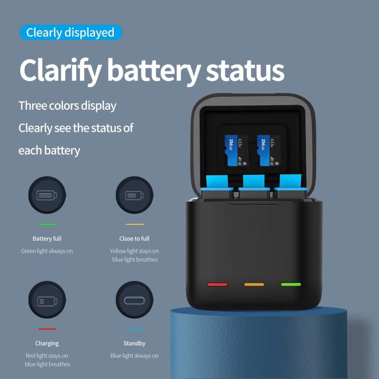 For GoPro HERO13 Black TELESIN 3 Slots Charging Case Compact Storage Box