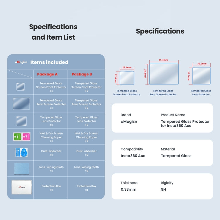 - Lens tempered film: approx. 32.2 x 32.2mm