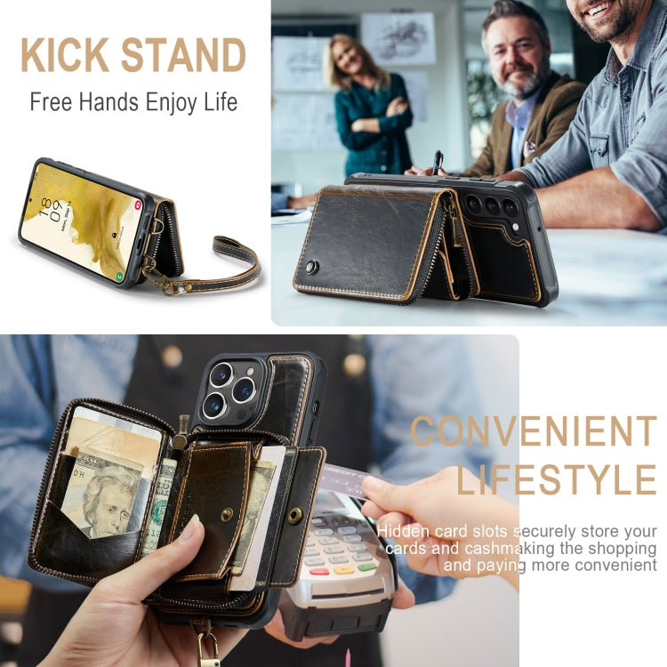 For Samsung Galaxy S23 5G JEEHOOD C22 Series Zipper Wallet Leather Phone Case with Dual Lanyard, For Samsung Galaxy S23 5G