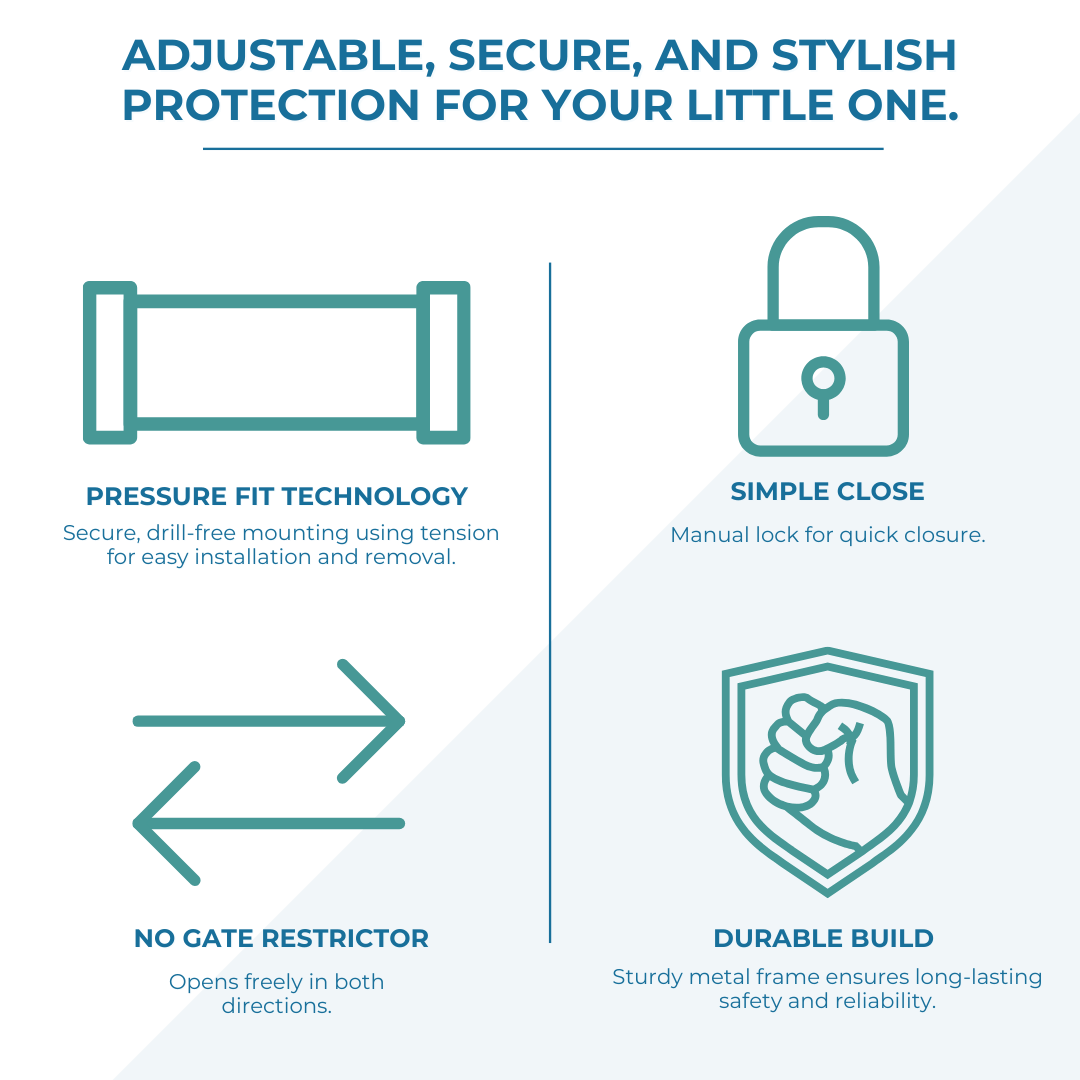 ✅ One-Hand Operation – Easily open and close the gate with one hand, making it convenient for parents carrying a child or household items.