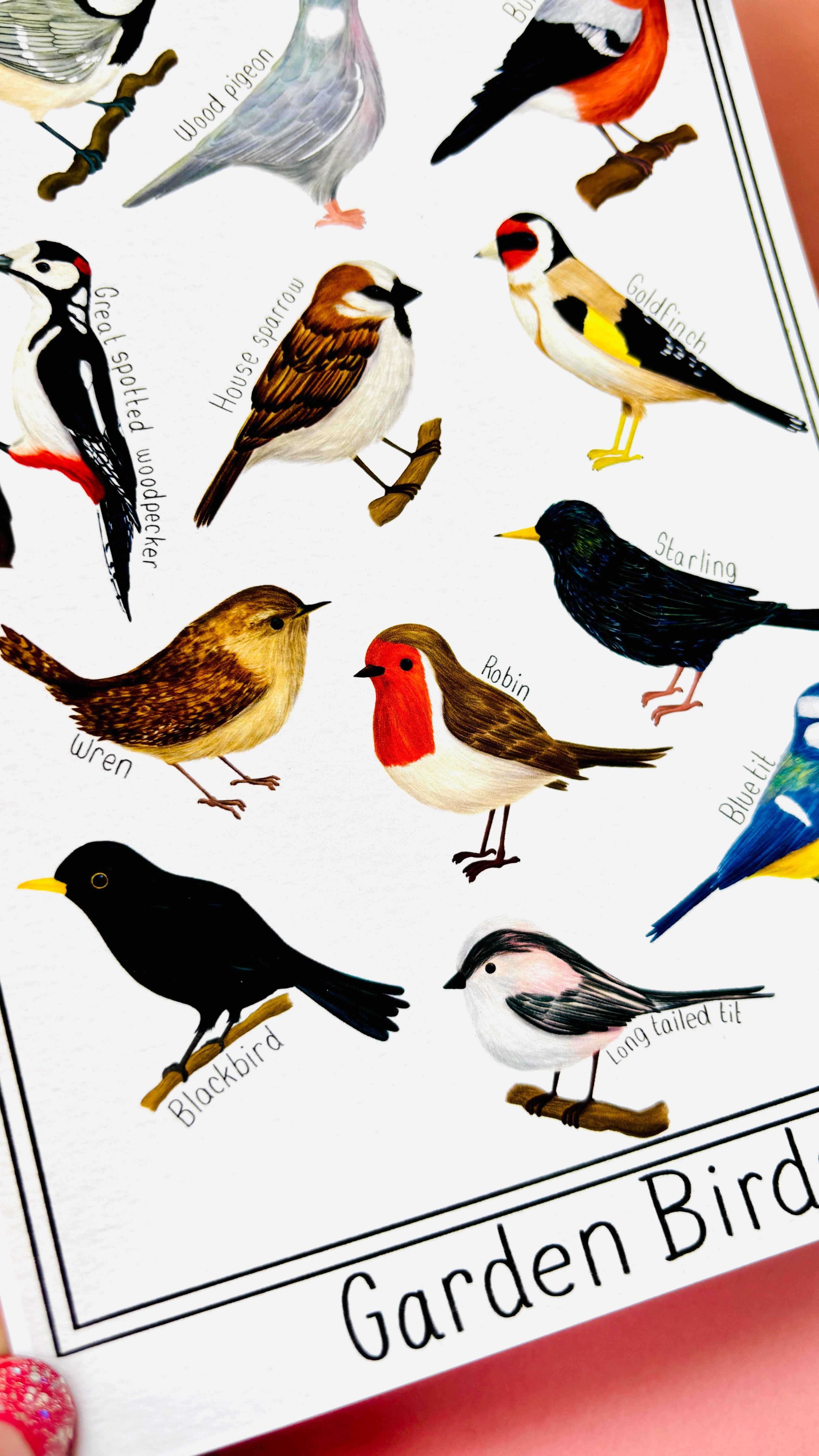 Garden bird wall art print. Bring the charm of the British countryside into your home with this beautifully hand-illustrated wall... Read more