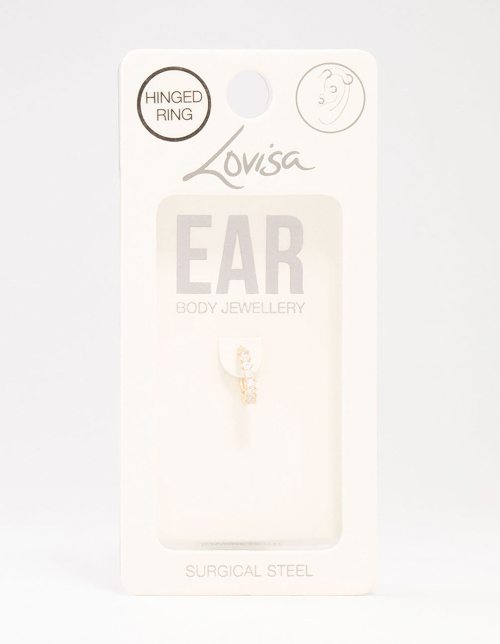 Upgrade your piercing game with this stunning clicker ring. This clicker ring is crafted using gold plated surgical steel and dazzling cubic zirconia crystals. Perfect for a helix, conch, rook, tragus, or septum piercing.