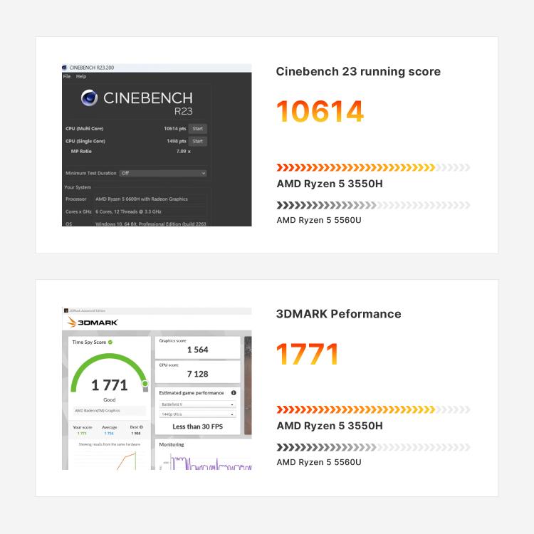 1. CPU: AMD Ryzen 5 3550H 4-core 8-threads, base frequency 2.1GHz, max boost frequency 3.7GHz