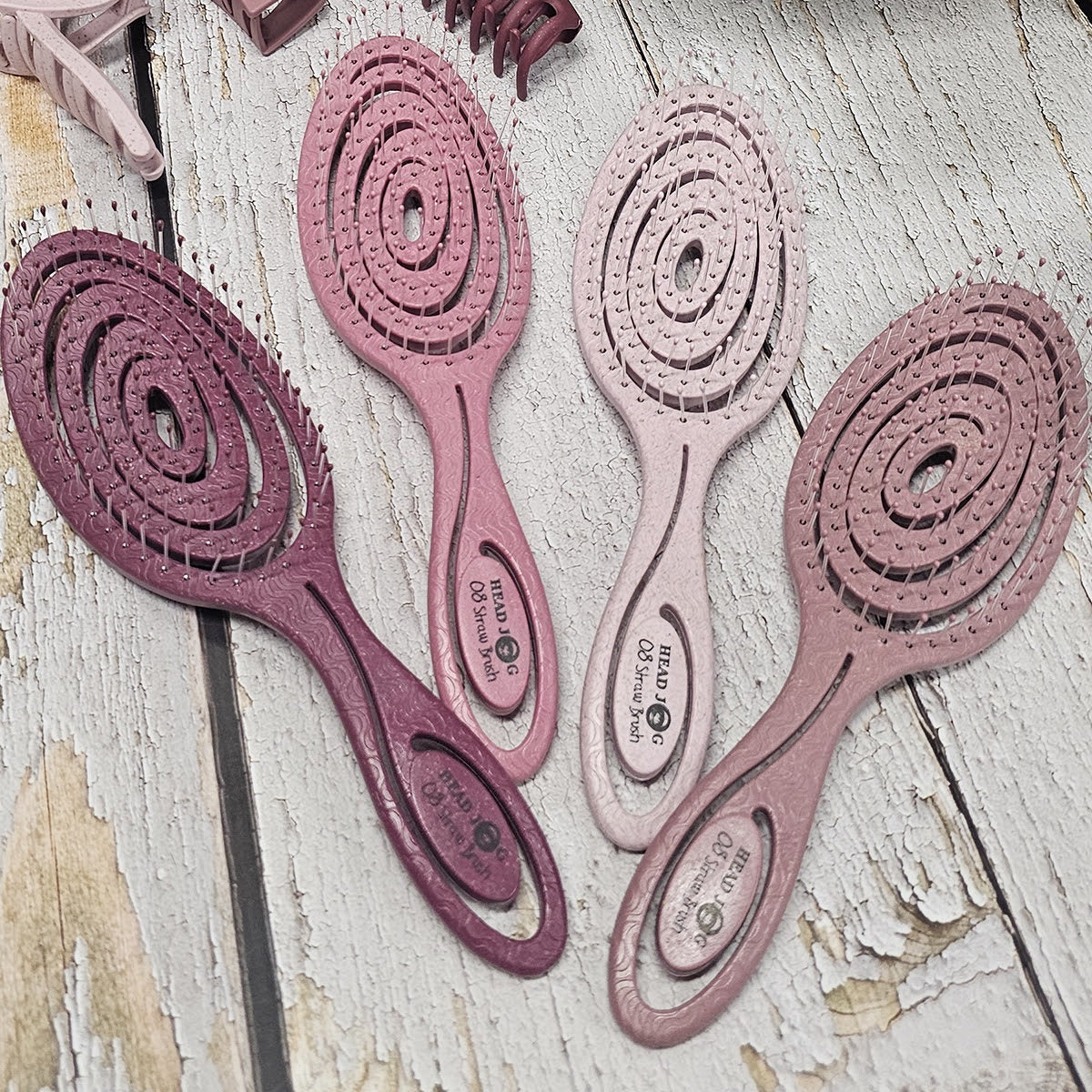 Environmentally friendly natural detangling hair brushes made from bio-material in Nude Blush Collection colours Orchid, Rose, Blossom and Mulberry.
