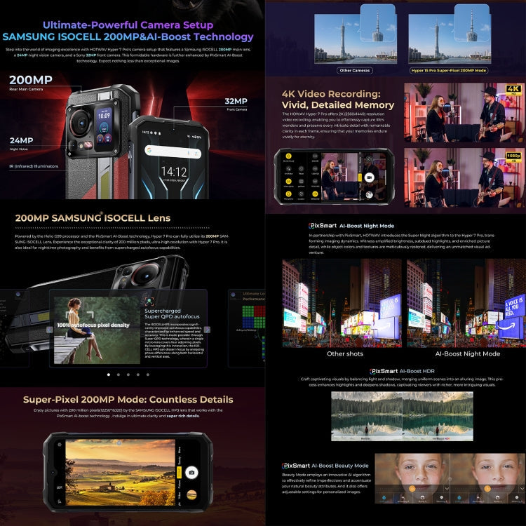 2. Rear Camera: 200MP ultra clear pixel + 24MP night vision