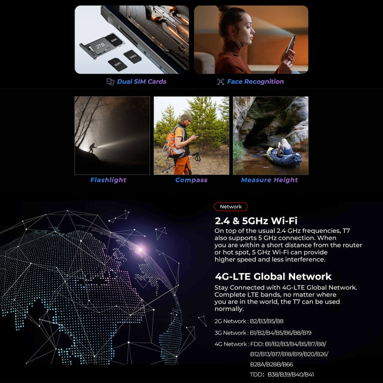 3. 4G: FDD: B1/B2/B3/B4/B5/B7/B8/ B12/B13/B17/B18/B19/B20/B26/B28A/ B28B/B66; TDD: B38/B39/B40/B41