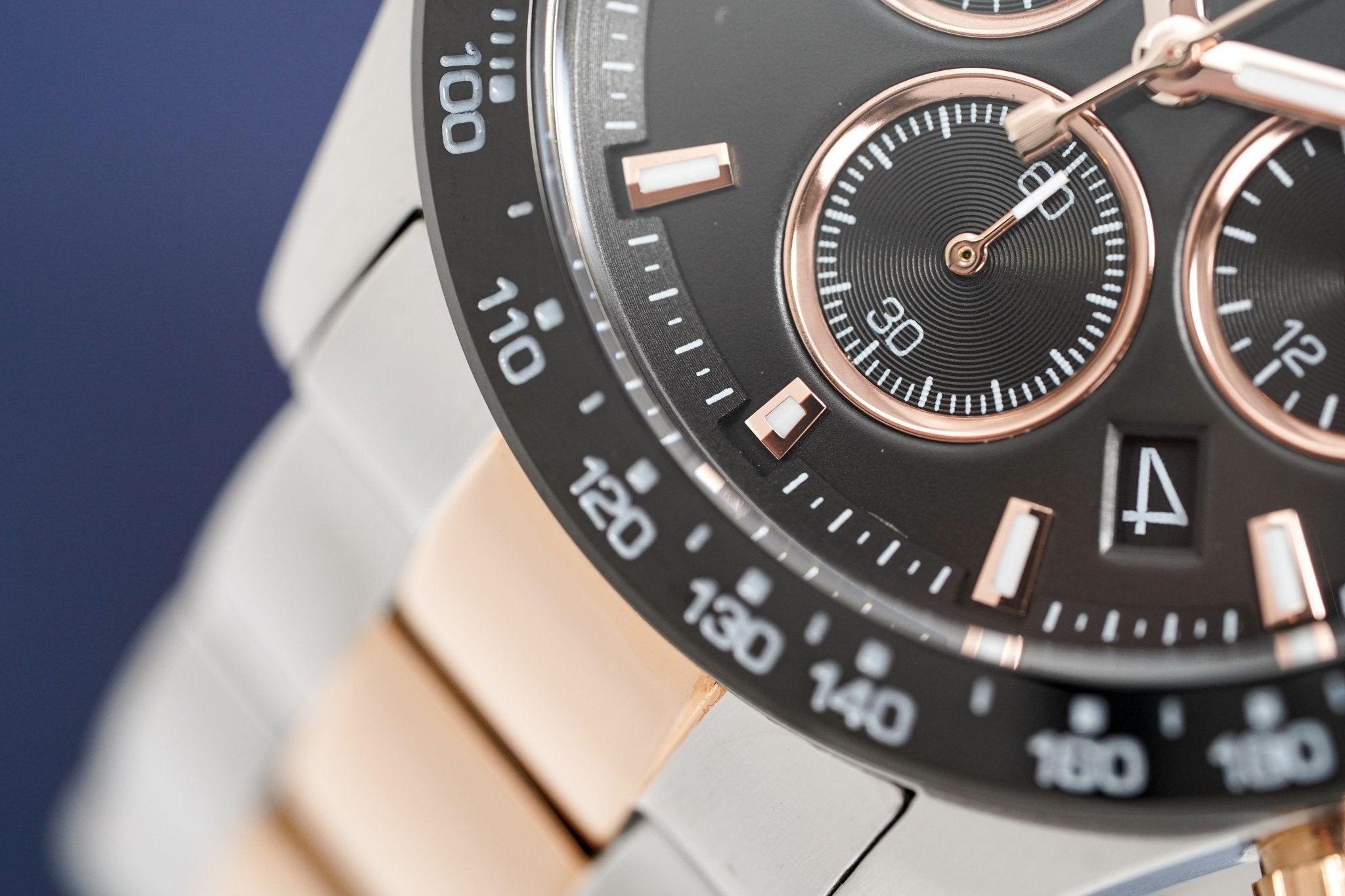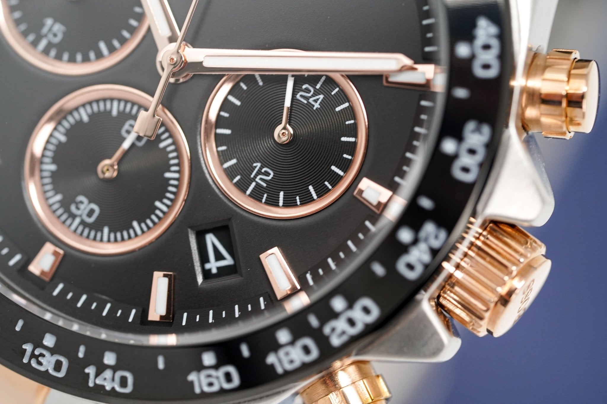 Japanese Made Quartz Chronograph Movement. Millisecond Counter. Running Seconds. Seconds Counter, 60 Minute Counter. Date. 44mm Stainless Steel Case. Scratch Resistant Mineral... Read more