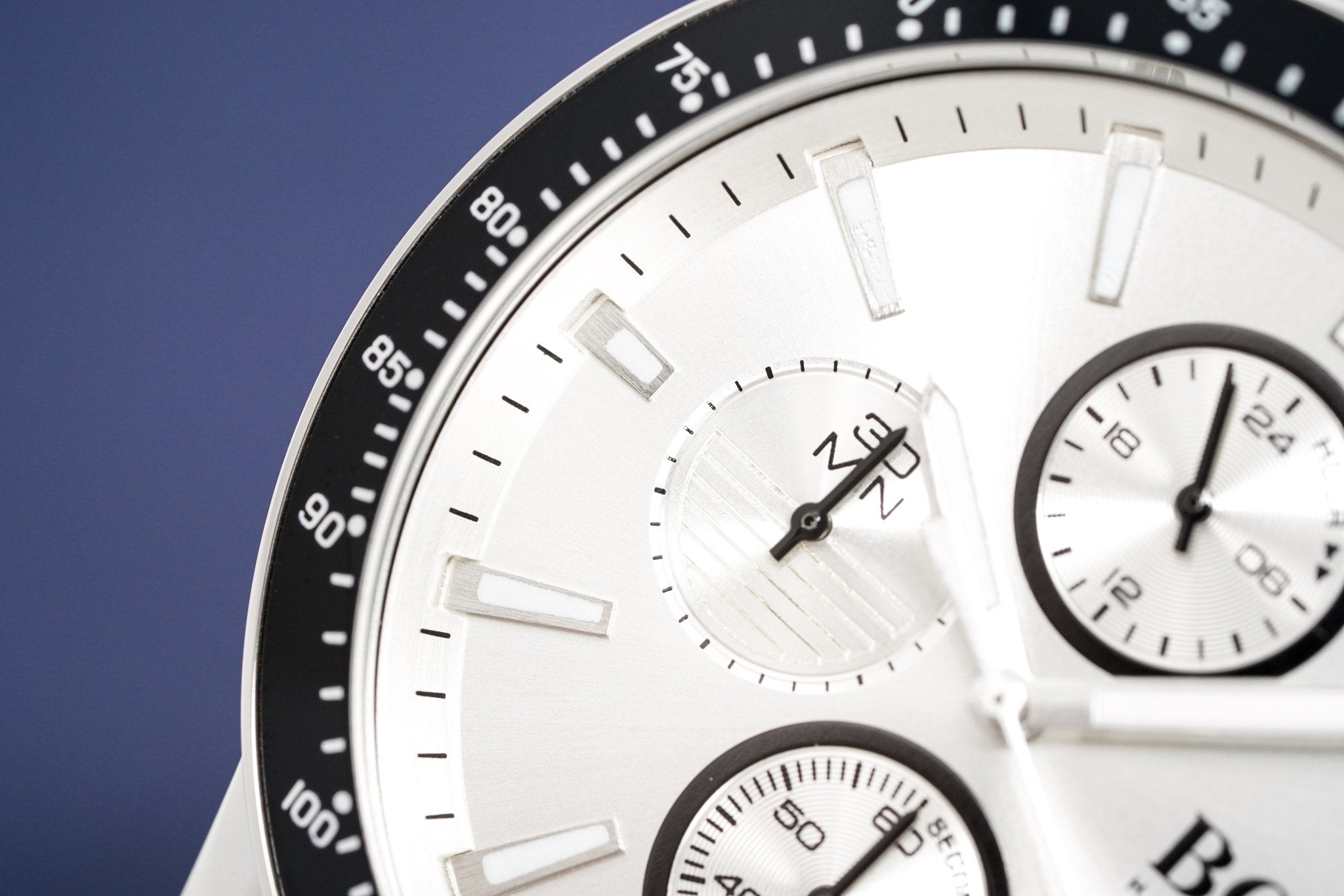 Japanese Made Quartz Chronograph Movement. Running Seconds. 30 Minute Counter. 24 Hour Indicator. Date. 44mm Stainless Steel Case. Scratch Resistant... Read more