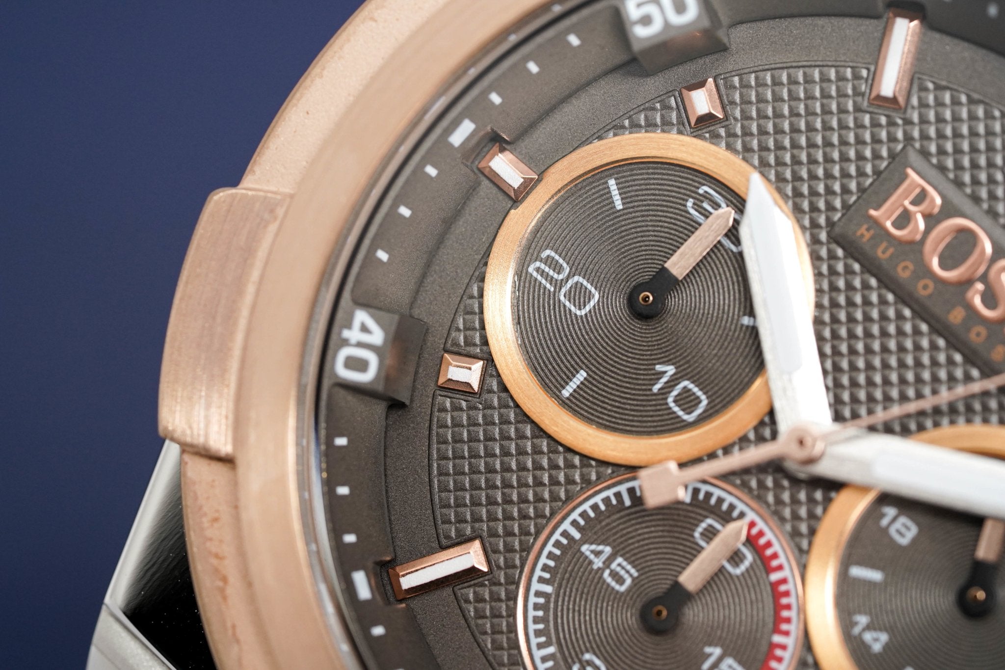 Japanese Made Quartz Chronograph Movement. Running Seconds. 30 Minute Counter. 24 Hour Indicator. Date. 45mm Stainless Steel Case. Scratch Resistant... Read more