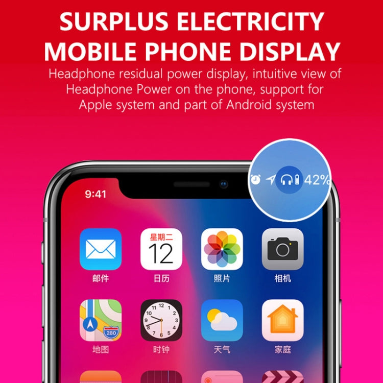 7. Remaining power of the headset, intuitively check the power of the headset on the mobile phone, support IOS and some Android systems