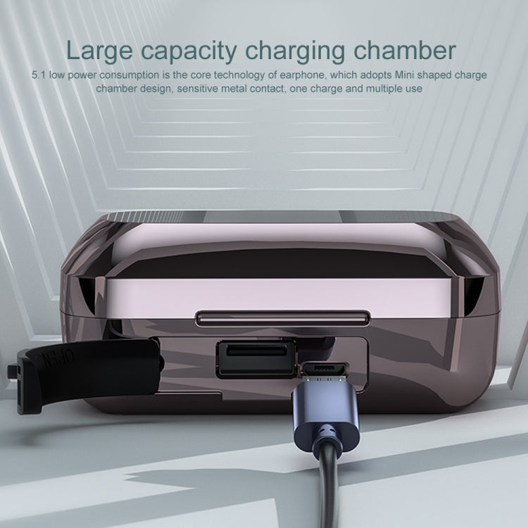 6. The middle LED digital display shows the power of the charging box, and the left and right LED marquees respectively display the battery power of the left and right earphones.