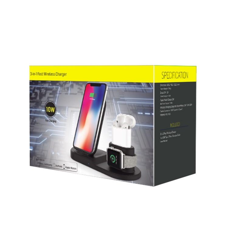 OJD-45 3 in 1 QI 10W Mobile Phone + Watch + 8 Pin Earphone Charging Port Multi-function Wireless Charger for Mobile Phones & Watches & AirPods 2