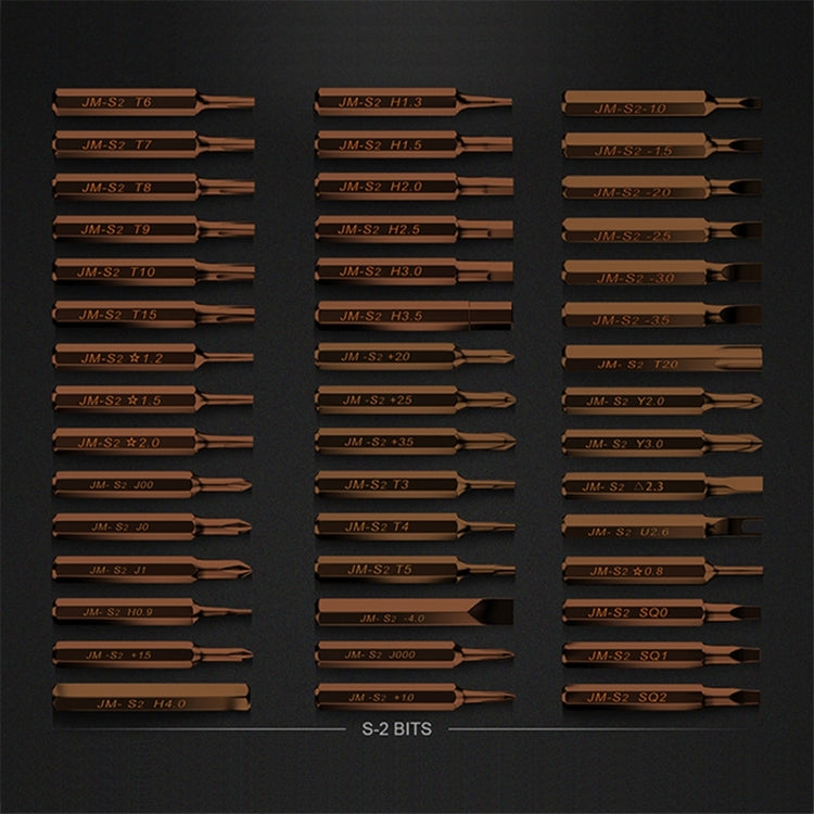 - 57 x Bits((S-2: M2.5, M3.0, M3.5, M4.0, M4.0, M5.0, 1.5, Y0.8, T2, H4.0, H5.0, H6.0) (Philips: 1.0, 1.5, 2.0, 2.5, 3.5, J000, J00, J0, J1, Others: H0.9, H1.3, H1.5, H2.0, H2.5, H3.0, H3.5, H4.0, Torx: T3, T4, T5, T6, T7, T8, T9, T10, T15, T20, Straight: 1.0, 1.5, 2.0, 2.5, 3.0, 3.5, 4.0, Five star: 0.8, 1.2, 1.5, 2.0, Square: SQ0, SQ1, SQ2, Y shape: 2.0, 3.0, Triangle: 2.3, U Shaped: U2.6))