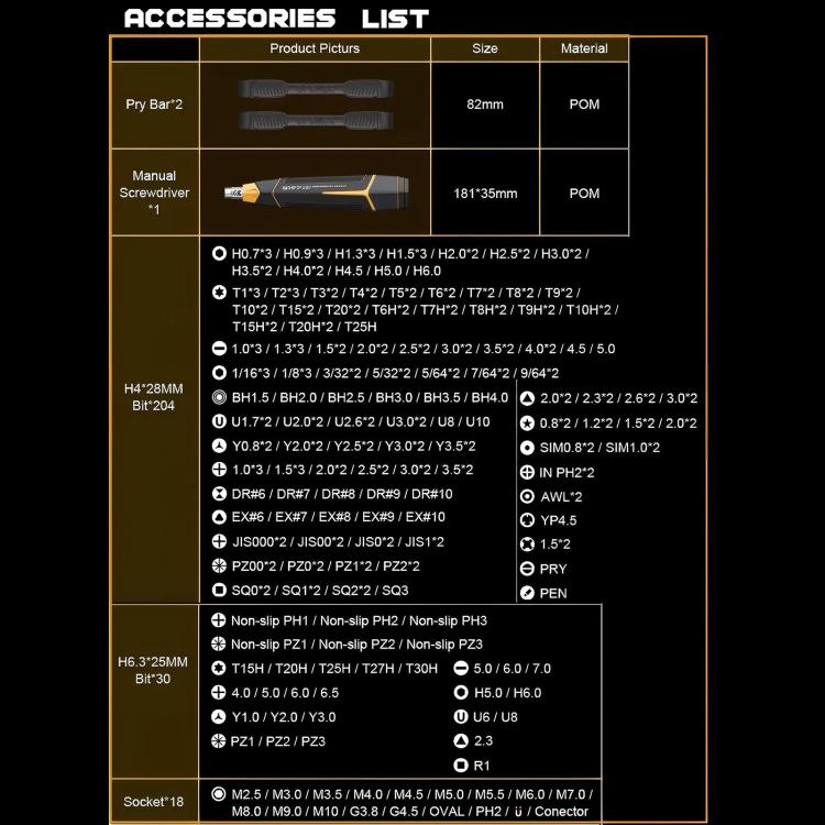 5. 252 CR-V steel micro screwdriver bits: including 216pcs of 28mm H4.0 CR-V phosphated bits and 36pcs of 25mm H6.33 bits, robust and durable