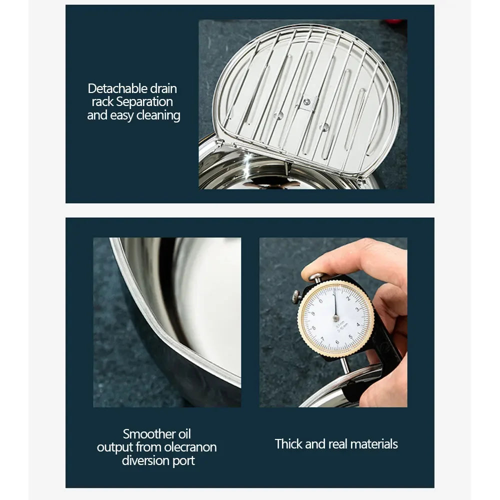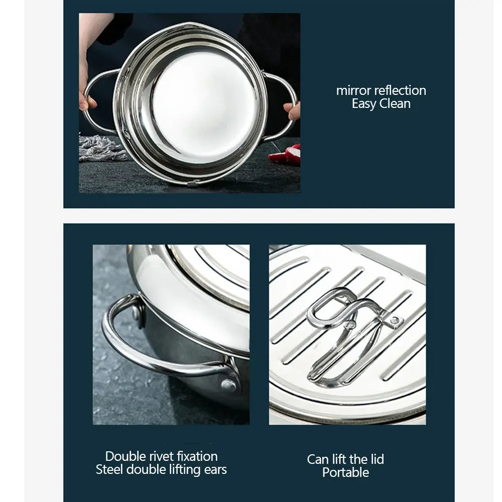 Japanese Deep Fryer With Thermometer and Lid 304 Stainless Steel Kitchen Tempura Fryer Pan Fryer Without Oil Frying Pan Fryer