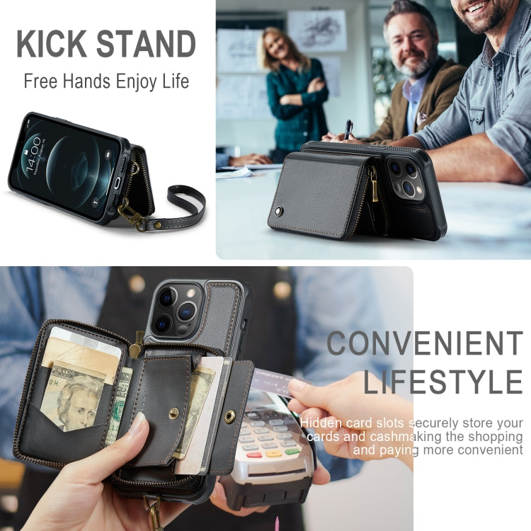 JEEHOOD C22 Series Zipper Wallet Leather Phone Case with Dual Lanyard
