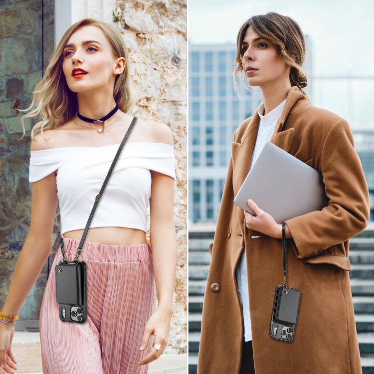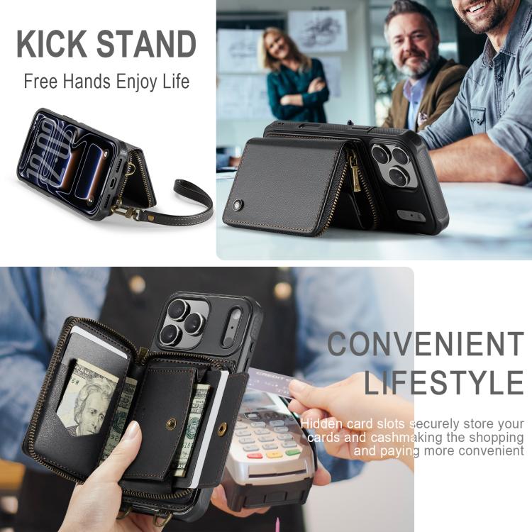 JEEHOOD C22 Series Zipper Wallet Leather Phone Case with Dual Lanyard