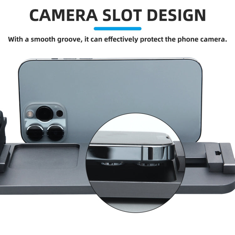 9. The position of placing the mobile phone can be adjusted by turning the screw, which can support the mobile phone with a length of 12.8-16.5cm, and tightening the screw to fix the mobile phone