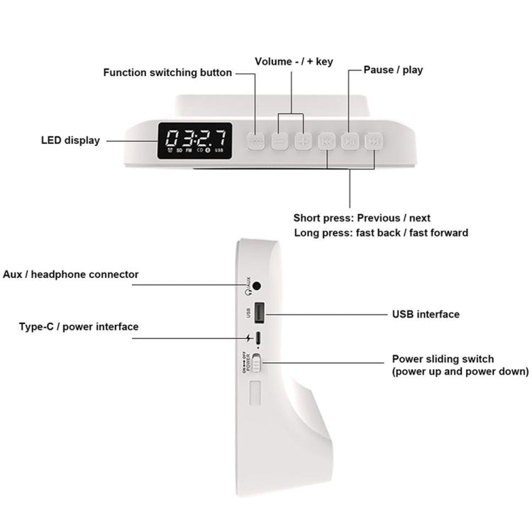 1. Rated voltage: DC 5V2. Rated power: 10W3. Rated current: 2A4. The way of placing the disc: cassette type5. Speaker... Read more