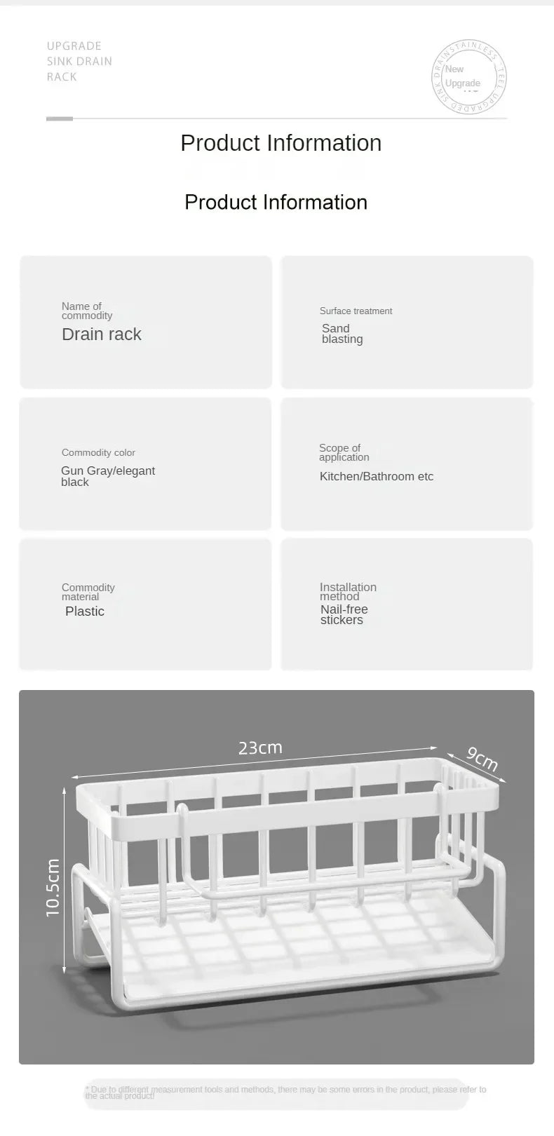 Kitchen Shelf Rag Storage Drainage Shelf No-Punch Storage Rack Home Spice Rack Sink Tap Sink Drainage Rack Kitchen Accessories