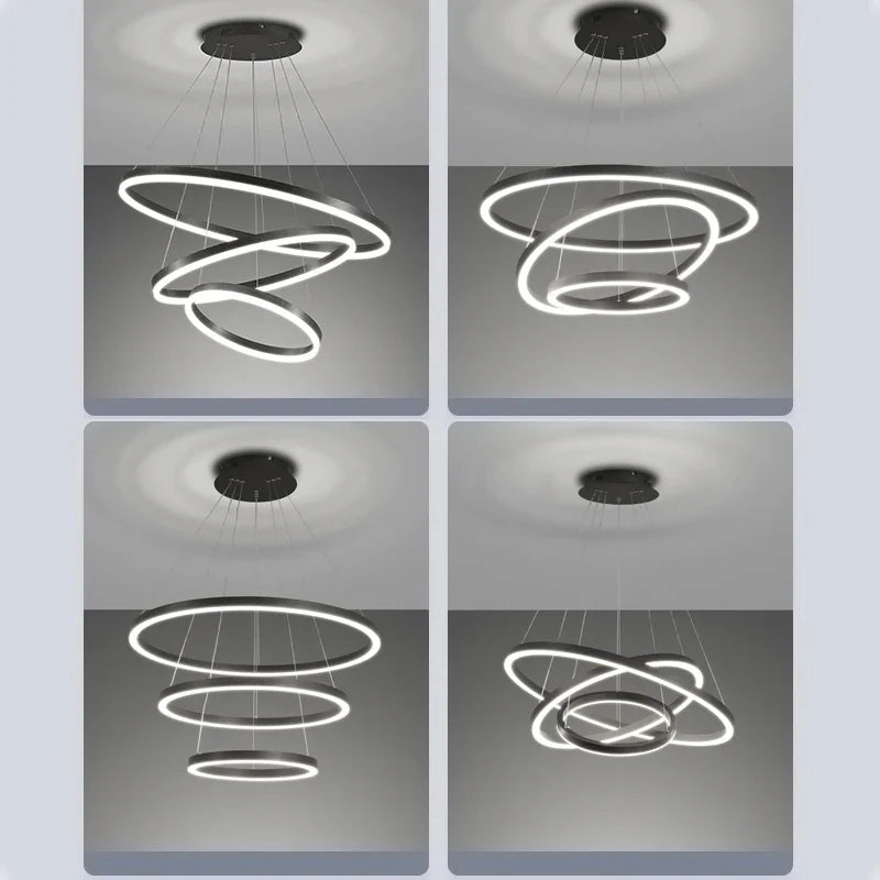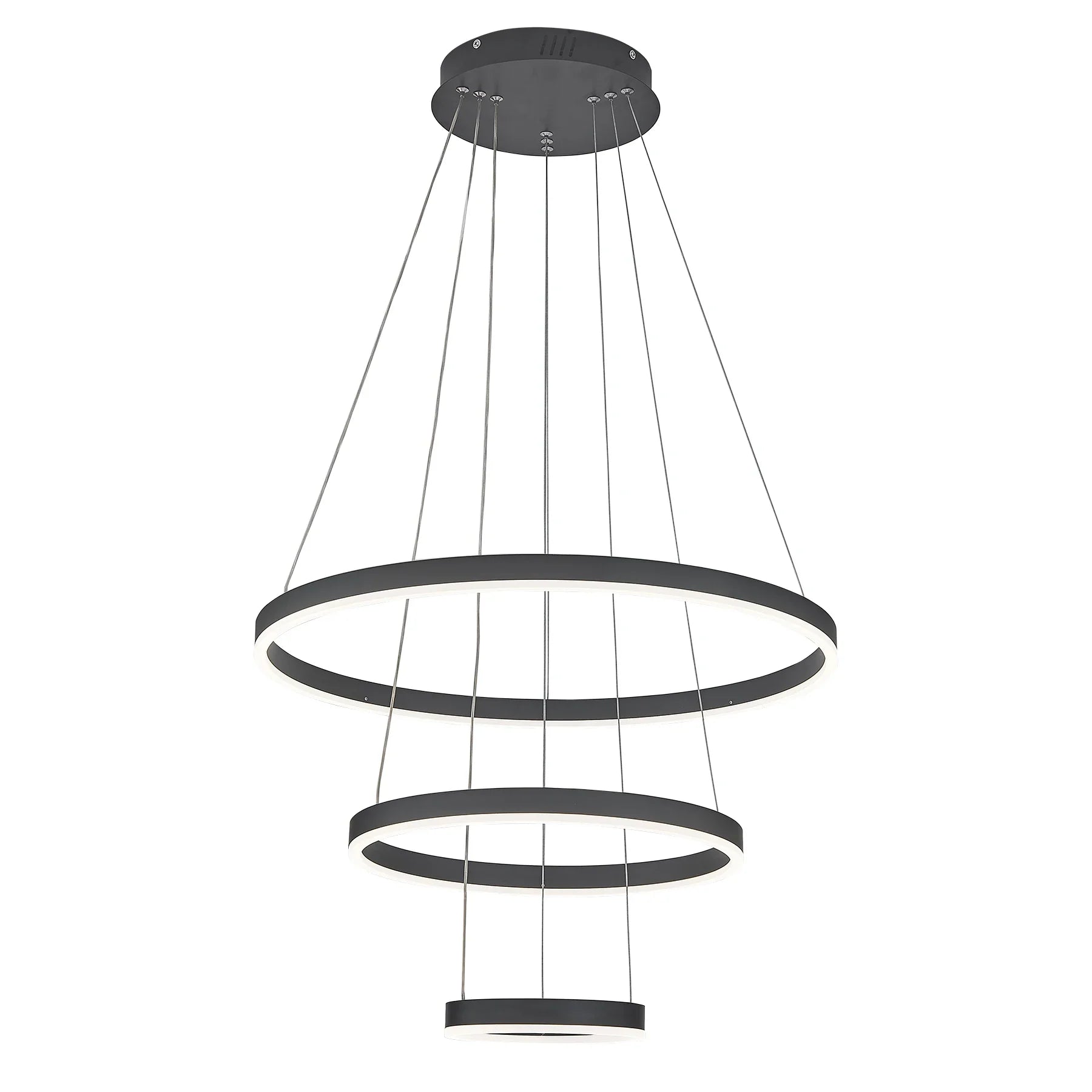 KOMORE Modern 3 Ring Aluminum Round Hanging LED Pendant Light Stepless Dimming & Cool White for Kitchen Living Room Hallway