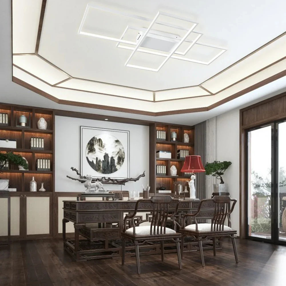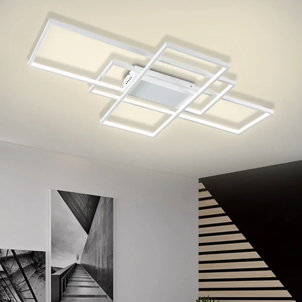 KOMORE Neutral Style Rectangular LED Semi Flush Ceiling Light, White / Stepless Dimming for Office, Living Room, Bedroom