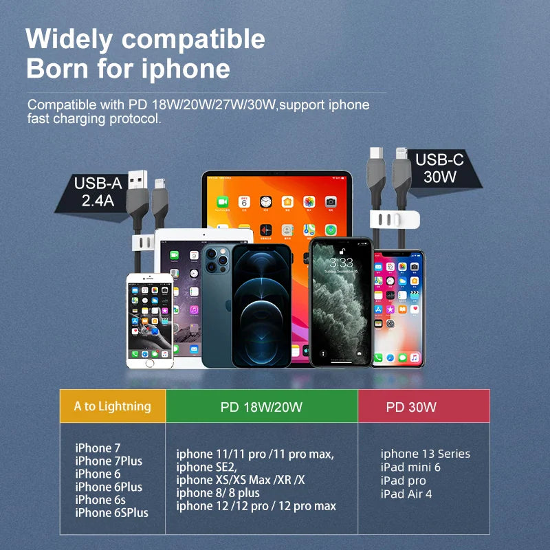 MFi USB C to Lightning PD30W Fast Charing Support iPhone8-14 full series