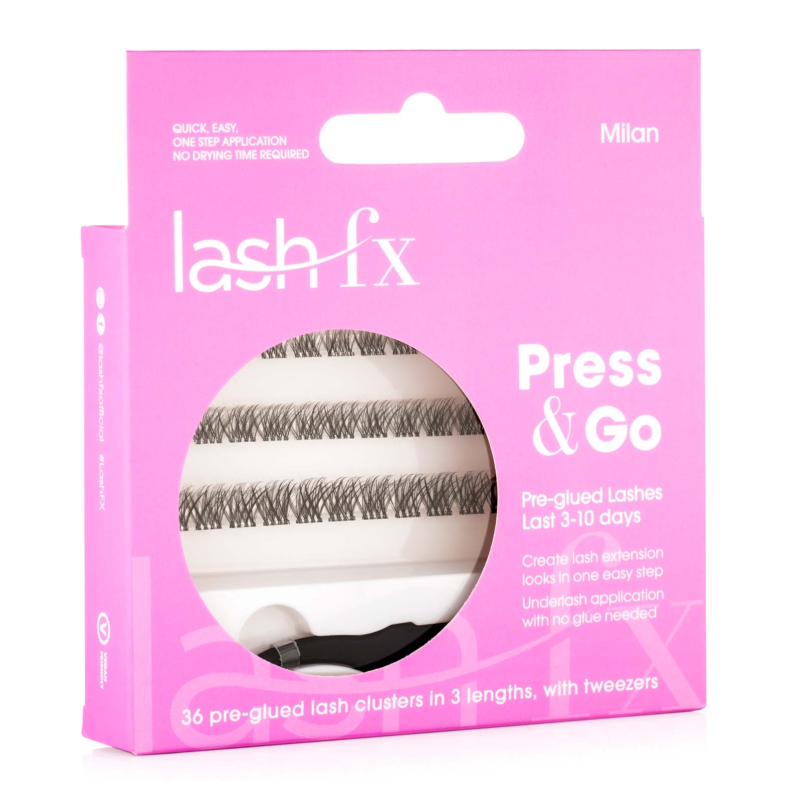 Achieve professional-looking eyelashes in the comfort of your own home with Lash FX Press & Go Pre-Glued Cluster Lashes. Designed and developed by UK beauty professionals, these pre-glued eyelashes are expertly crafted to deliver stunning, salon-quality results with minimal effort. Featuring a cutting-edge adhesive formula, these lashes provide an extra-strong hold lasting between 3–10 days, ensuring you stay glamorous for longer. Whether you prefer natural lashes or a bold look, these cluster lashes offer the perfect alternative to salon treatments.