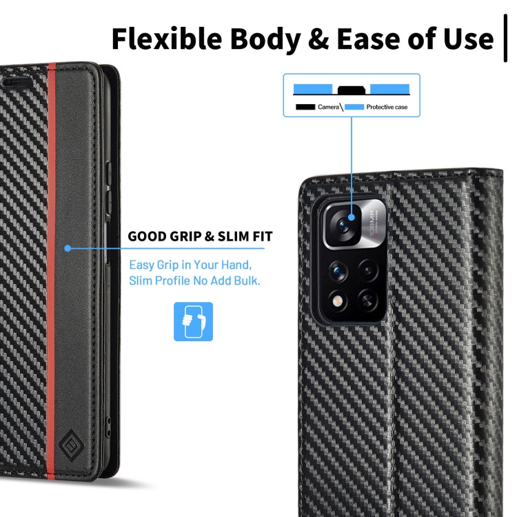 LC.IMEEKE Carbon Fiber Texture Flip Leather Phone Case, For Xiaomi 11T / 11T Pro, For Xiaomi Mi 11 Lite, For Xiaomi Poco X4 Pro 5G, For Xiaomi Poco X3 NFC / Poco X3 Pro, For Xiaomi Redmi Note 11 Pro China, For Xiaomi Redmi Note 11 4G / Note 11S