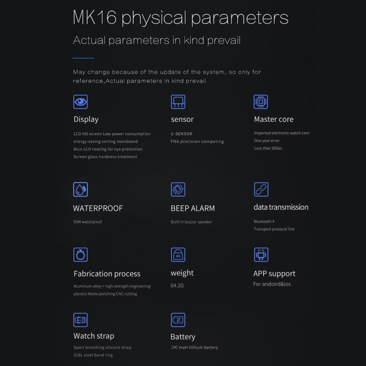 Lokmat MK16 LCD Screen 50m Waterproof Smart Watch, Support Information Reminder / Remote Camera / Walking Motion Monitor