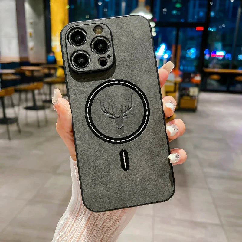 Luxury PU Deer Leather Case For iPhone 16 Pro Max 15 14 13 12 11 Pro Max 15Pro 14Pro 13Pro For Magsafe Wireless Charge Back Case