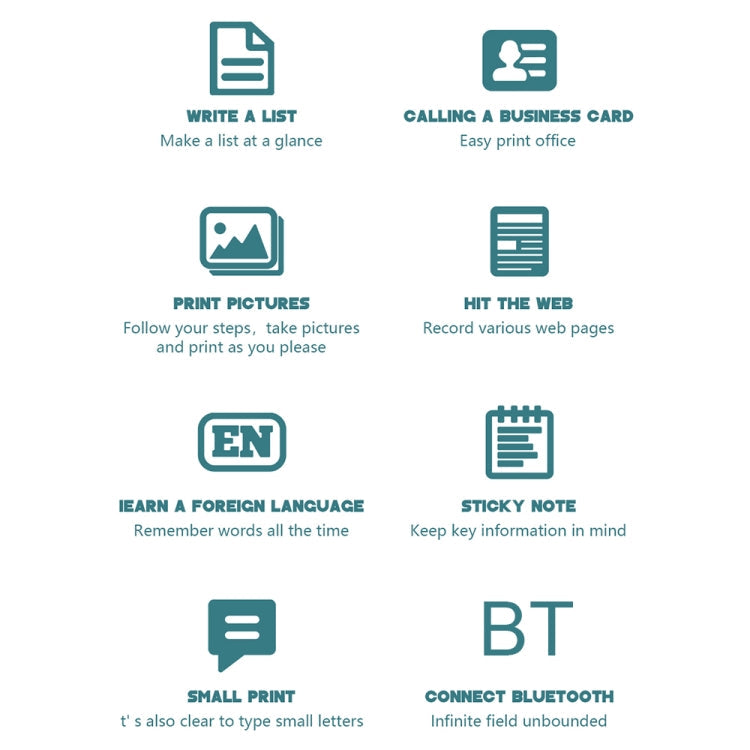 1. Function: text extraction, picture/photo printing, sticker printing, label printing