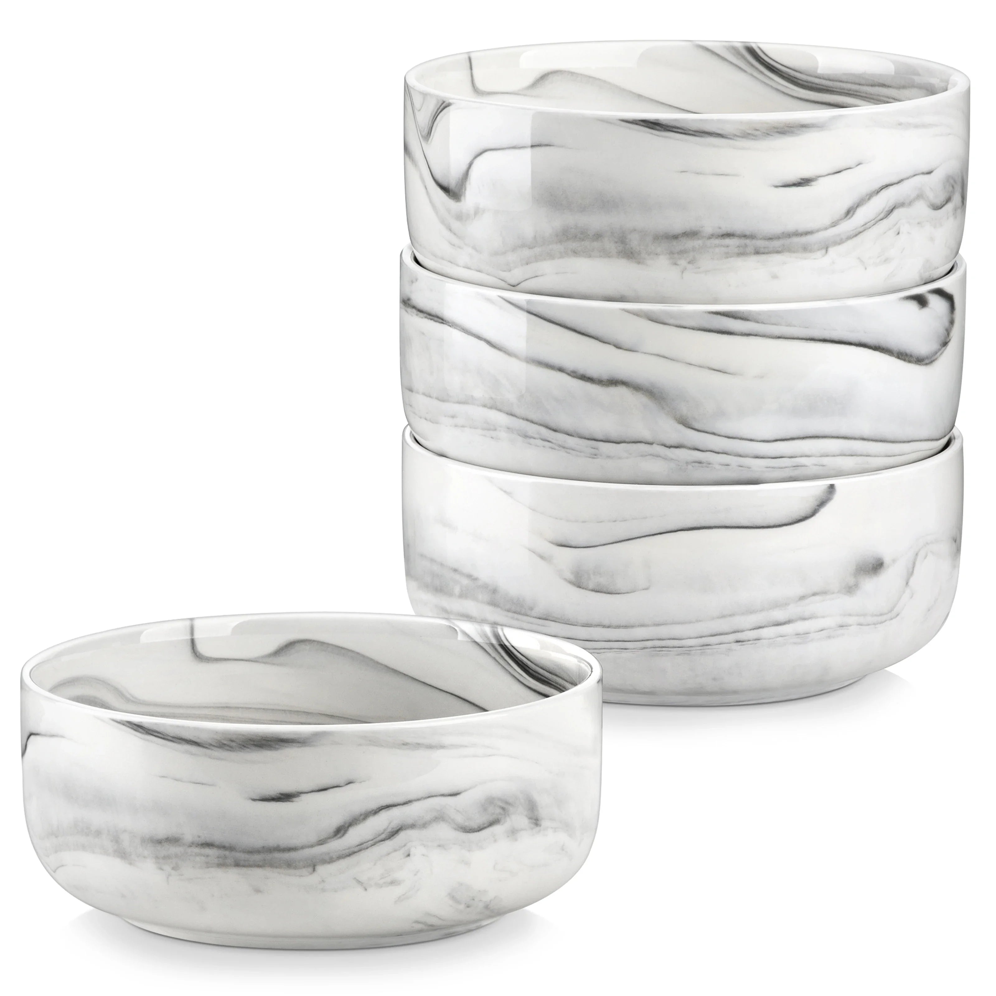 ►【LUNA Series Modern White Porcelain Bowls Set】Bowls set of 4. Capacity: 650ML. Dimensions (each): 14.7 x6 cm/ 5.8x2.3 inch. Glossy white finish, round and vertical edge design creates a good feel with sturdy porcelain.
