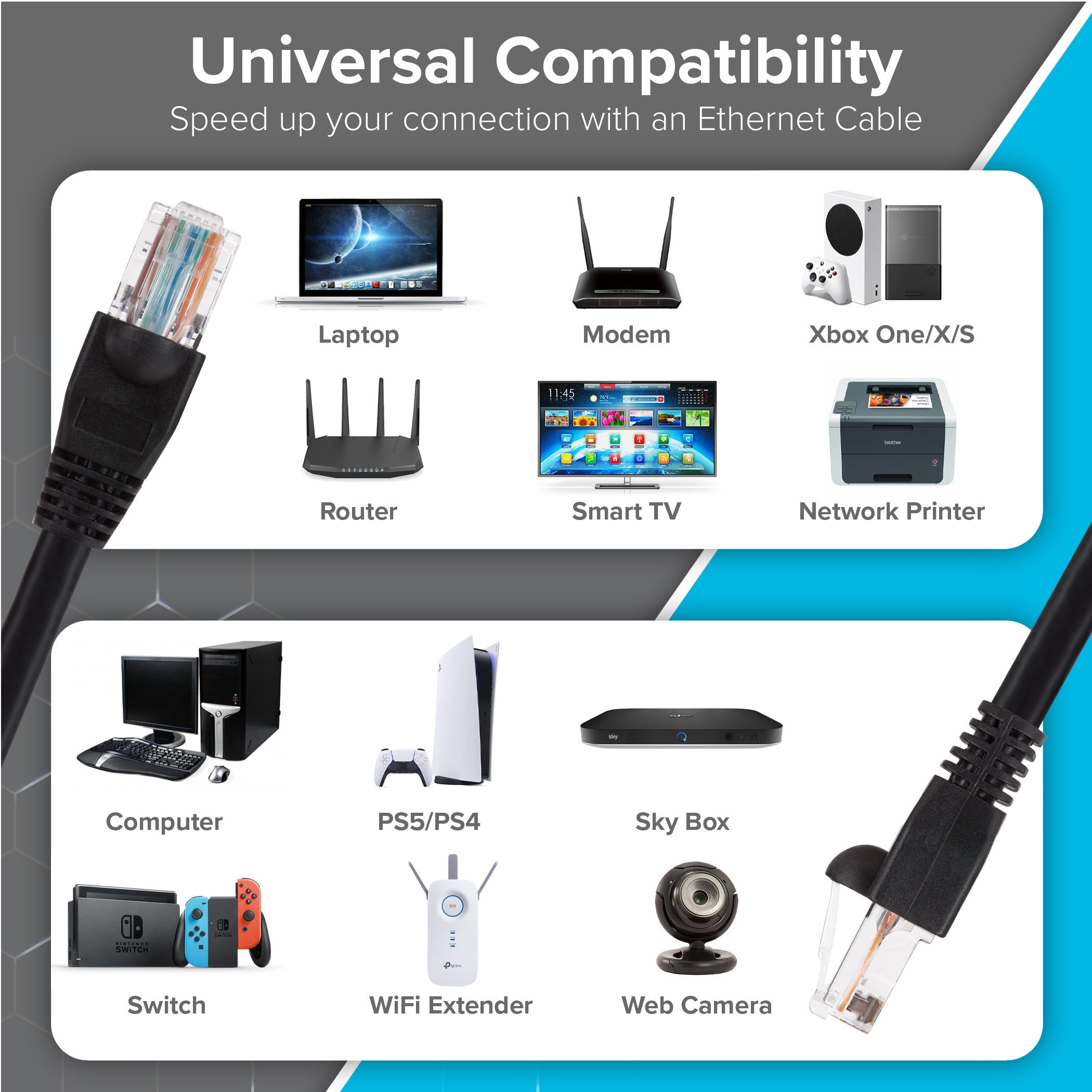 This Maplin CAT6 RJ45 Plug UTP Ethernet Network Cable is perfect for connecting your desktop computer, game console, Smart TV or set-top boxes to your Internet router/modem.