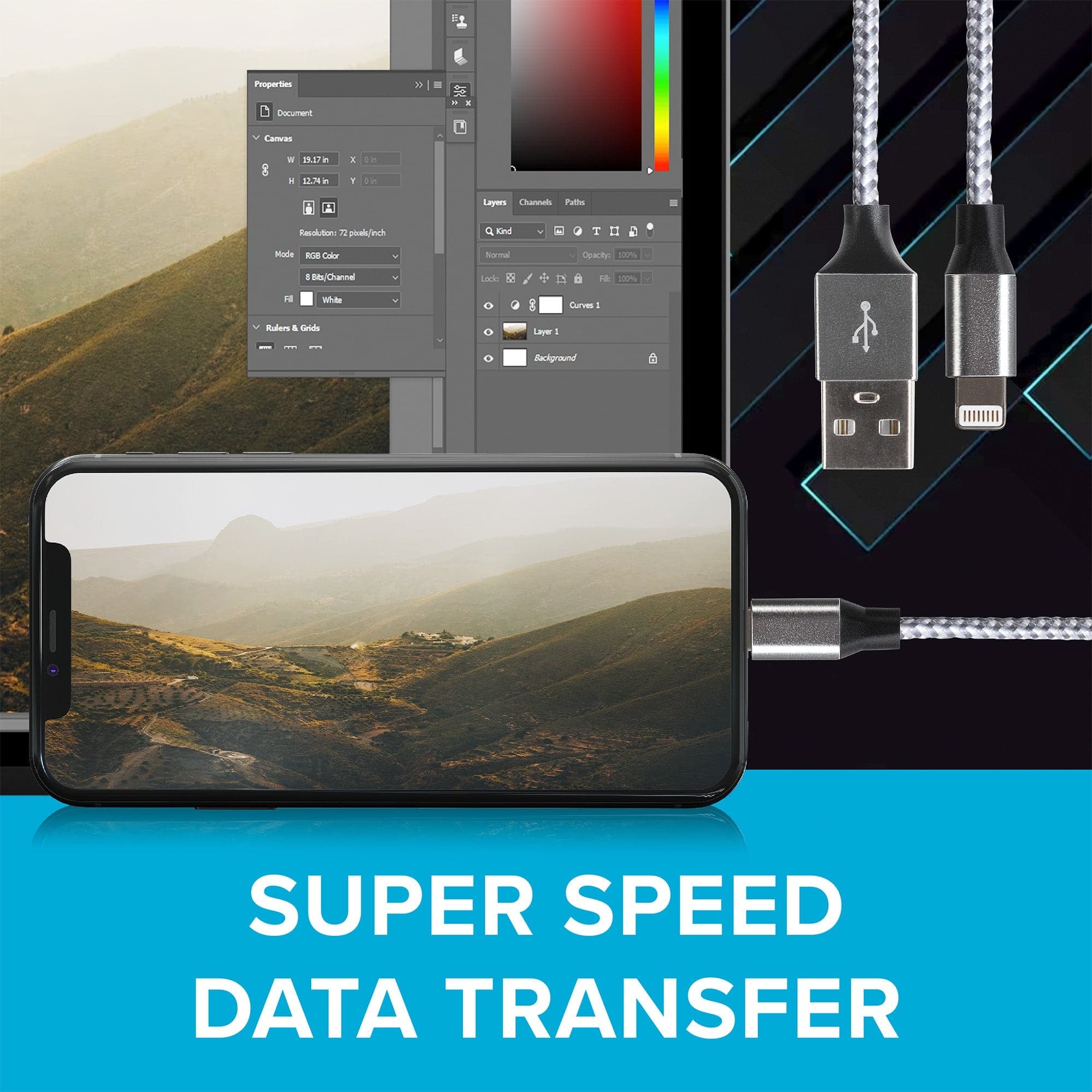 Whether you're on your iPhone, iPad or iPod don't get caught without charge with this Apple licensed Maplin Lightning Connector to USB-A Braided Cable. Quickly recharge your phone and sync your device to your laptop or computer for easy file transfer. Move photos and files, download updates and optimize your phone with a generous cable reach of 1m. If you don't want to sync your device, you can just use the Lightning cable as a charger by changing your settings. Maplin Pro cables are designed to last longer than a standard cable. These cables have fabric braided outer to ensure both durability and flexibility.