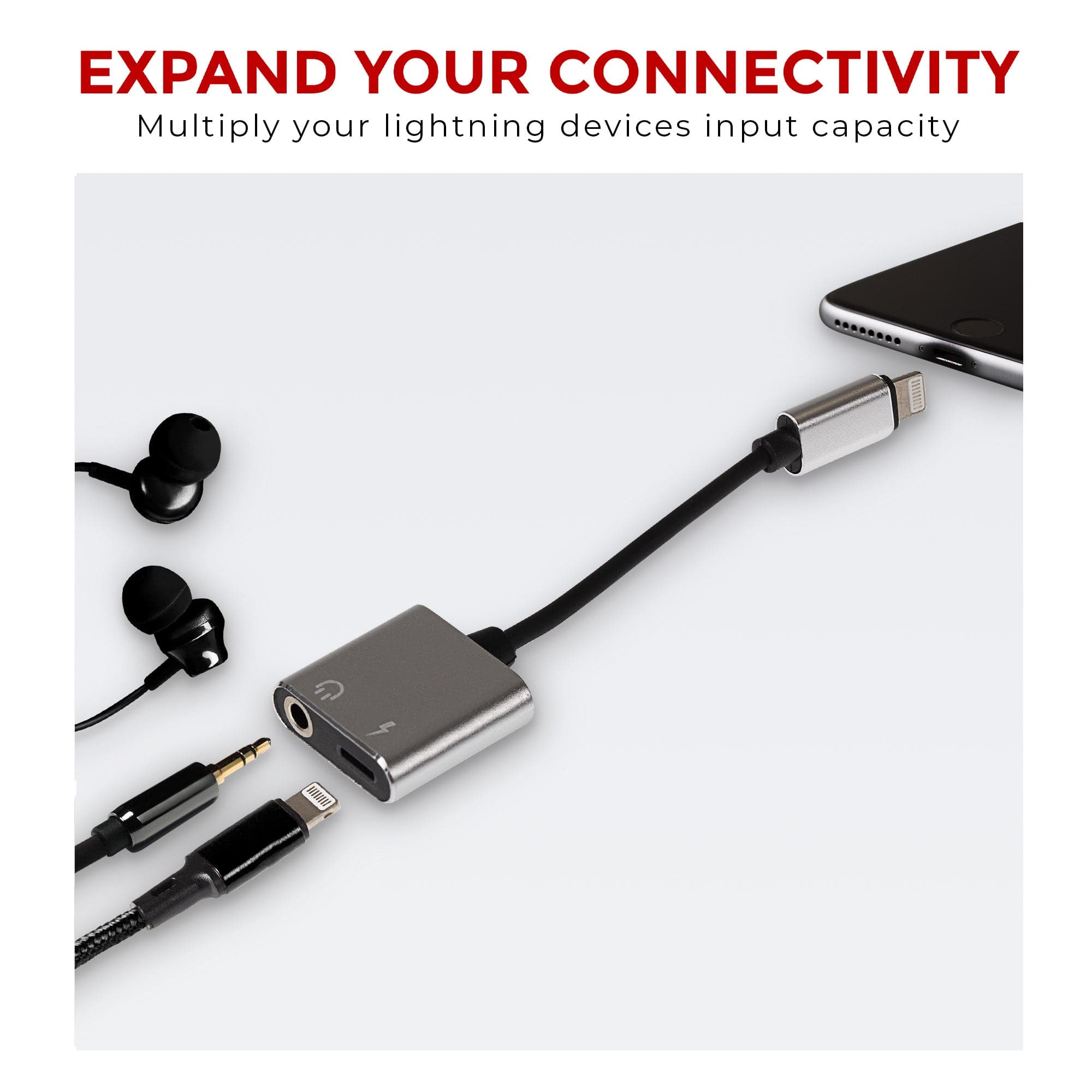 Use the Maplin Lightning to 3.5mm Headphone Audio Jack / Lightning Charging Port Adapter to connect your headphones with 3.5mm jack to your iOS device. The 3.5mm jack is for Audio only and does not support telephone calling but there is also a Lightning Charging Port to Charge and sync your Apple lightning device at the same time.