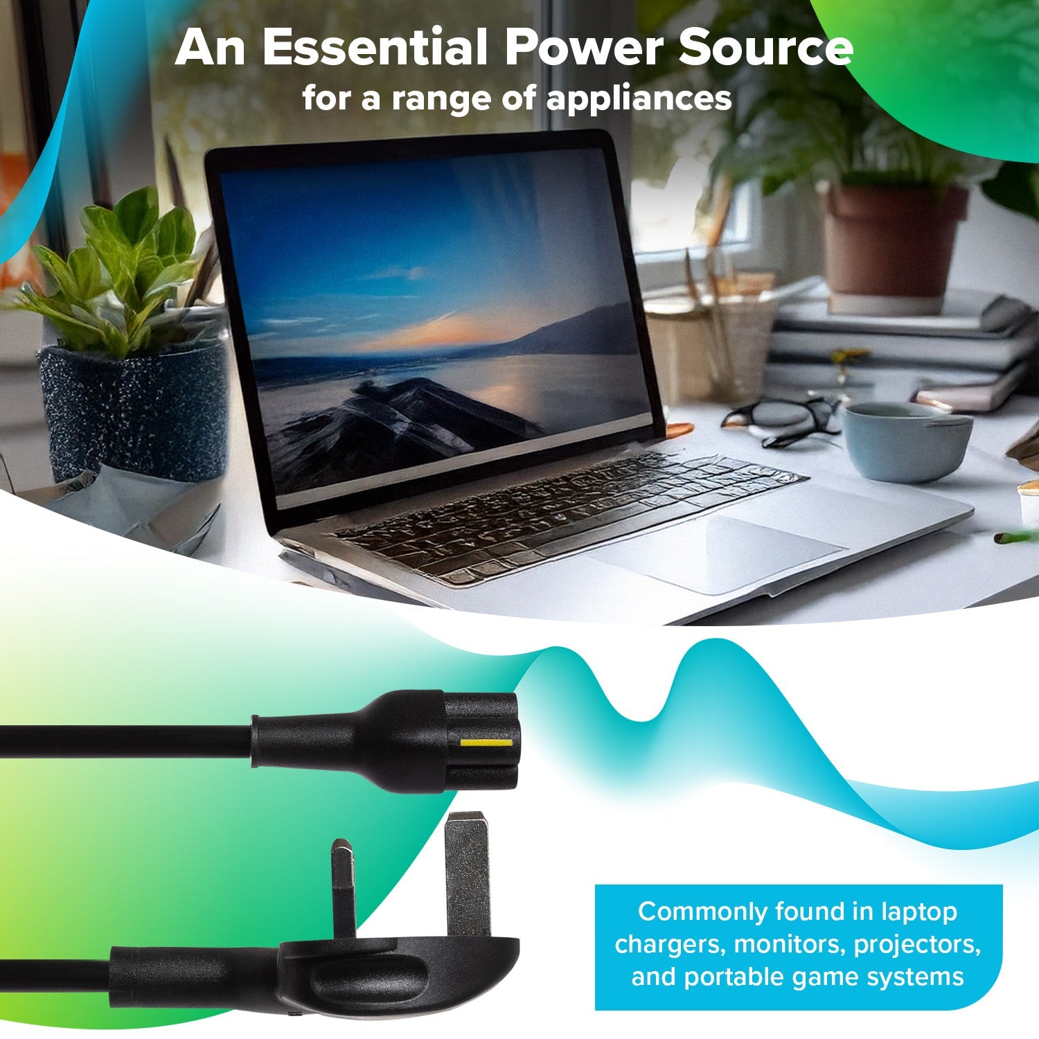This Maplin Power Lead IEC C5 Clover Leaf Plug Female to UK 3-Pin Plug, also known as a clover-leaf lead, is commonly used for laptop power supplies. The PVC connectors are moulded to provide a high-quality cable which is perfect for home and office use. The Plug is pre-fitted with a fuse.