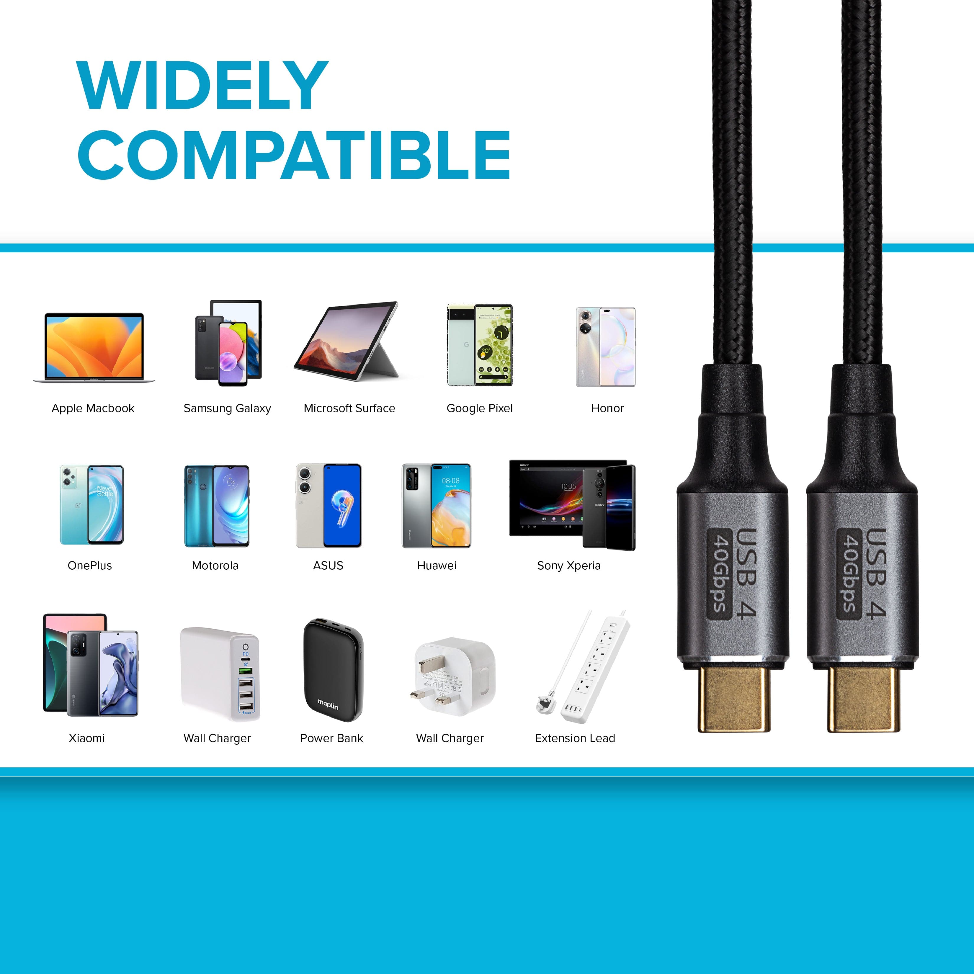 The Maplin Pro USB-C to USB-C v4.0 40Gbps 8K@60Hz Super Speed Braided Cable is capable of super fast 40Gbps data transfer with the very highest quality connection together with 8K @ 60Hz video.