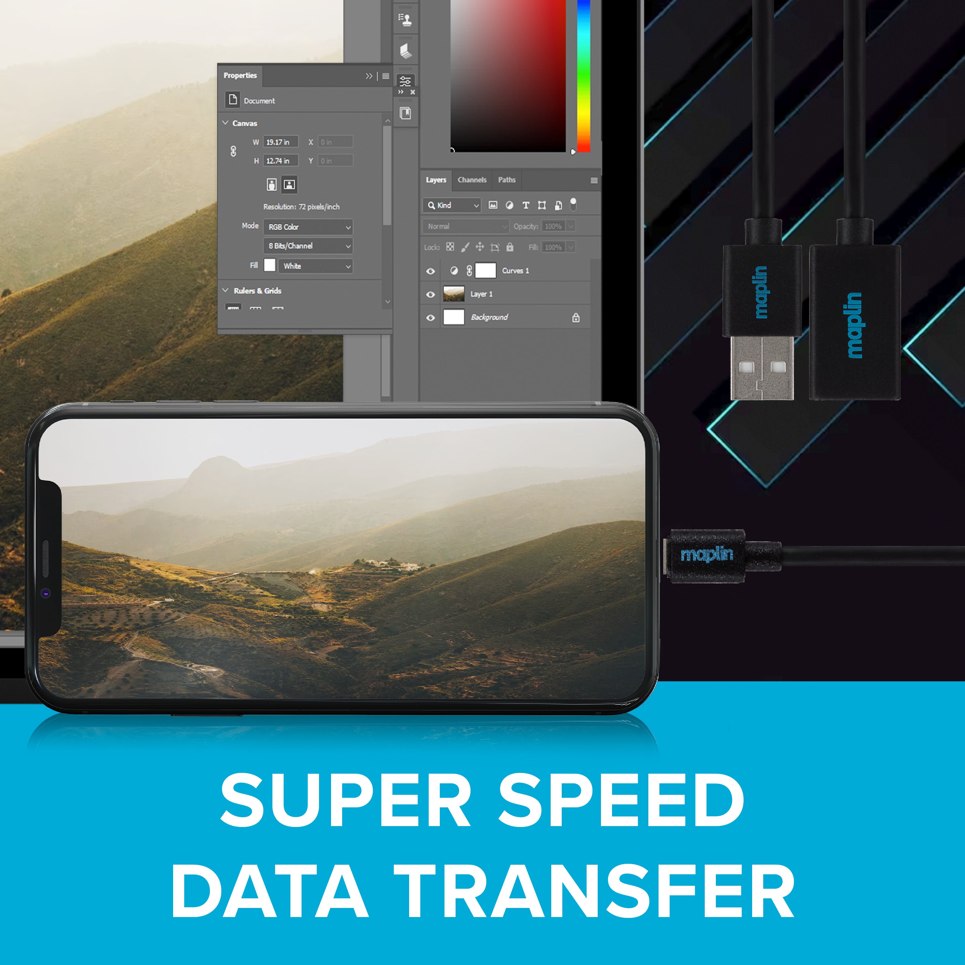 This Maplin USB-A Male to USB-A Female Extension Cable uses a male USB A 2.0 port to female USB A 2.0 port, which allows you to extend an existing connection or move a USB connection point to another location without the hassle of moving your computer. This cable can be used to passively extend your connection up to a maximum of five meters, however, a larger distance can be covered with help from a USB repeater cable. The maximum transfer rate of this cable is 480 Mbps when all devices are USB 2.0 compliant.