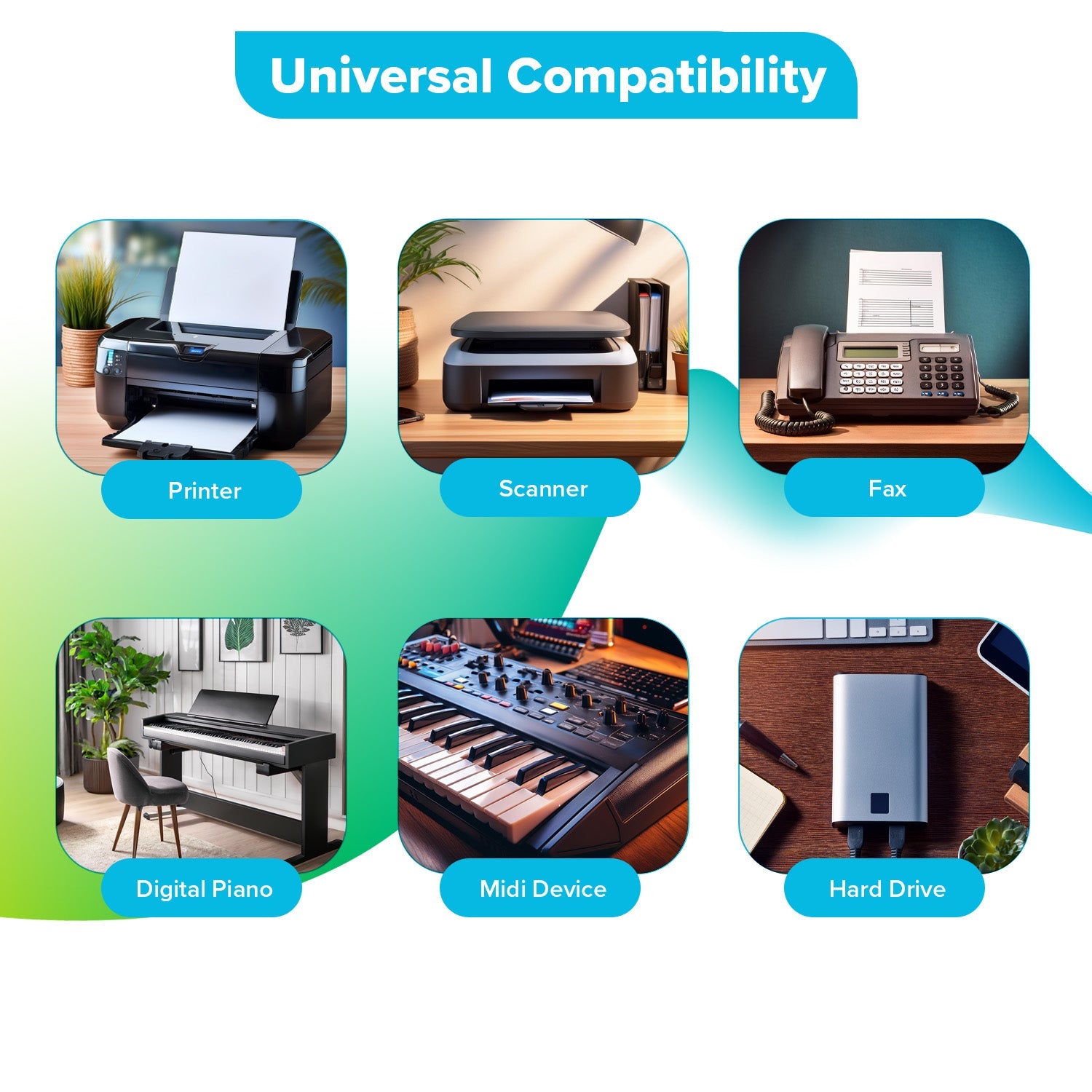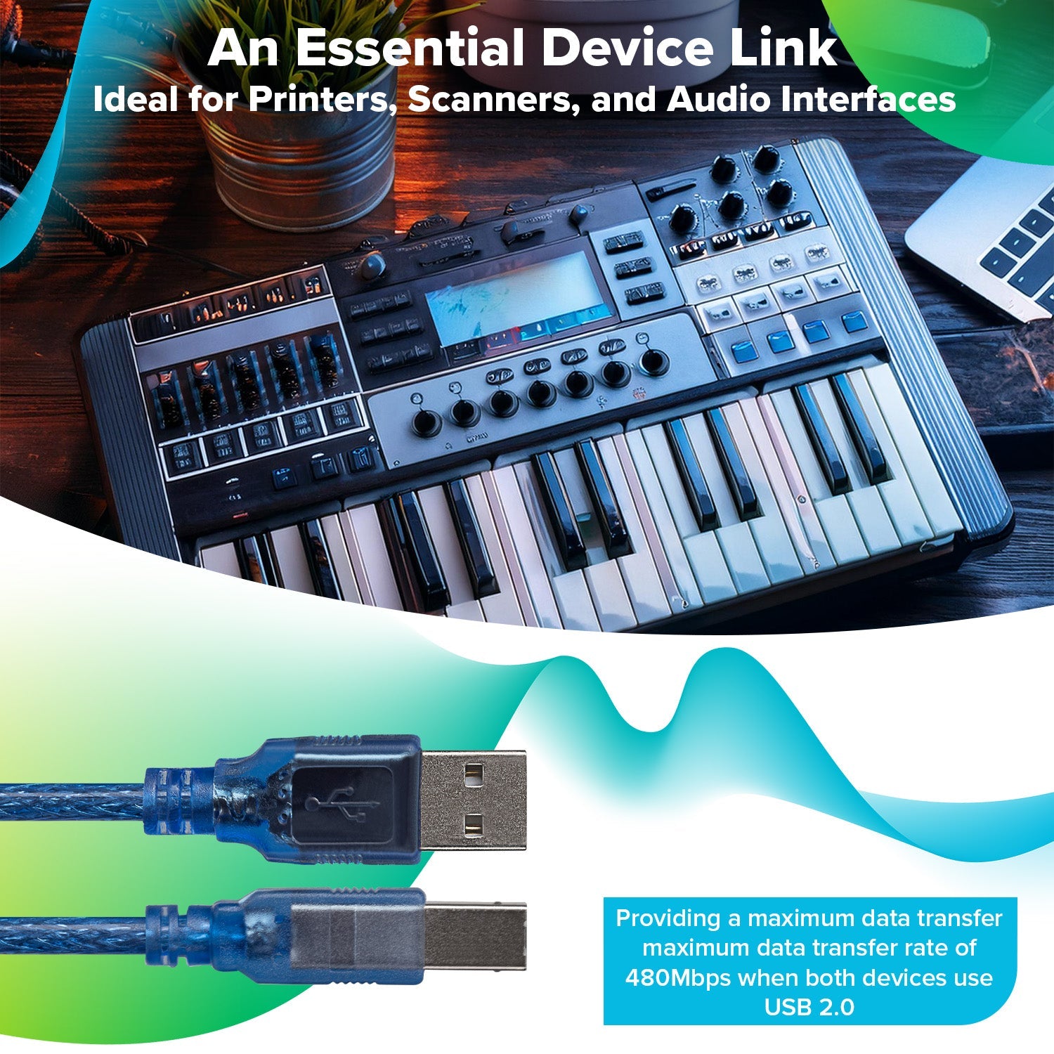 This Maplin USB-A to USB-B Cable features USB-A male to USB-B male connectors, ideal for adding printers, scanners and external drives to PCs and laptops. The cable is designed for long-lasting quality.