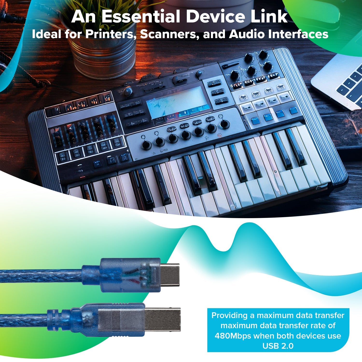 This Maplin USB-C to USB-B Cable features USB-C male to USB-B male connectors, ideal for adding printers, scanners and external drives to modern laptops. The cable is designed for long-lasting quality.