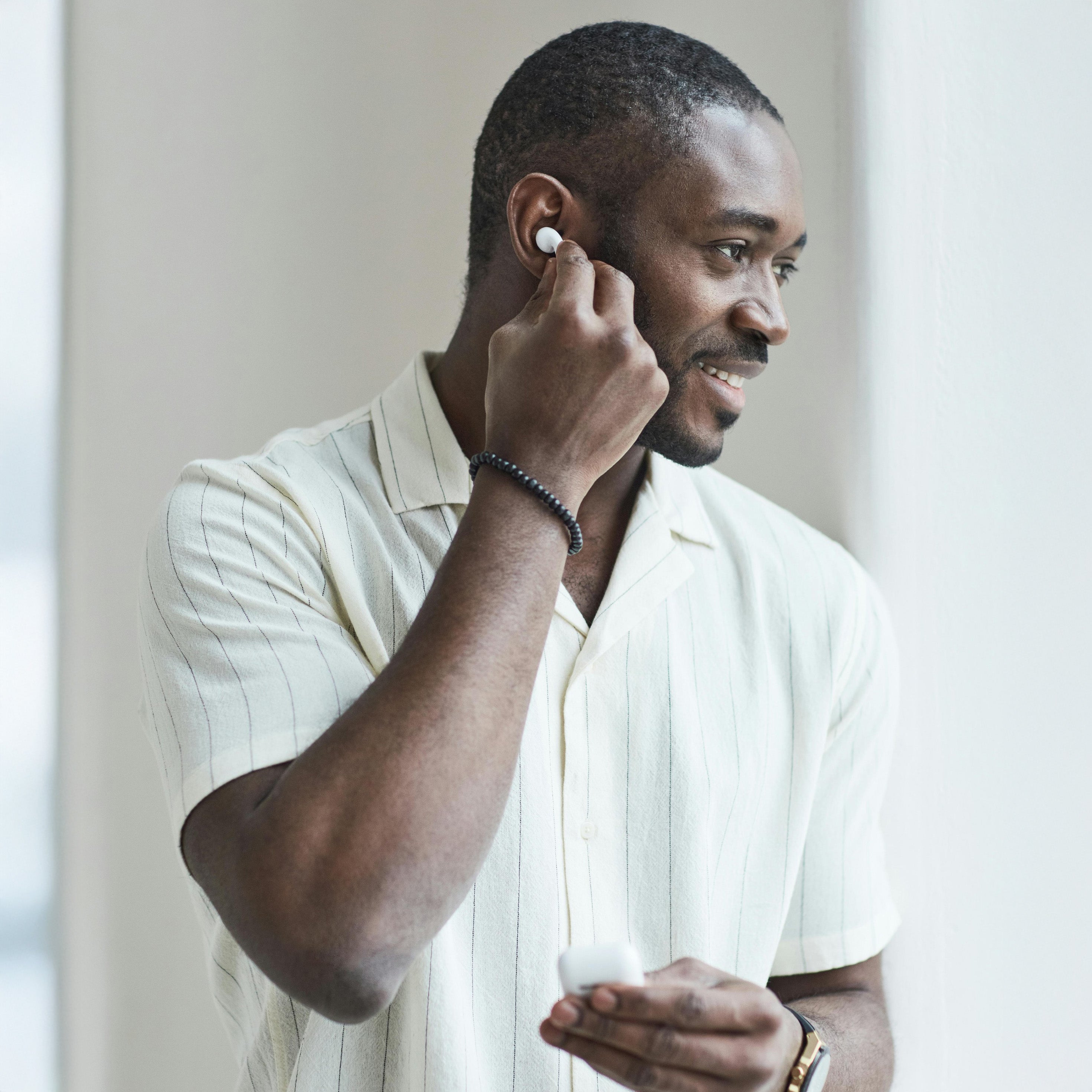 The Earbud's battery is good for about 6 hours of music playback and can be re-charged in just over an hour via the included charging case. The case includes a handy LED display of the charging status of the case and individual headphones. It will help you keep an eye on available power and get you back listening again.