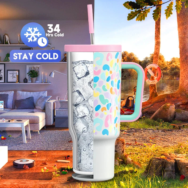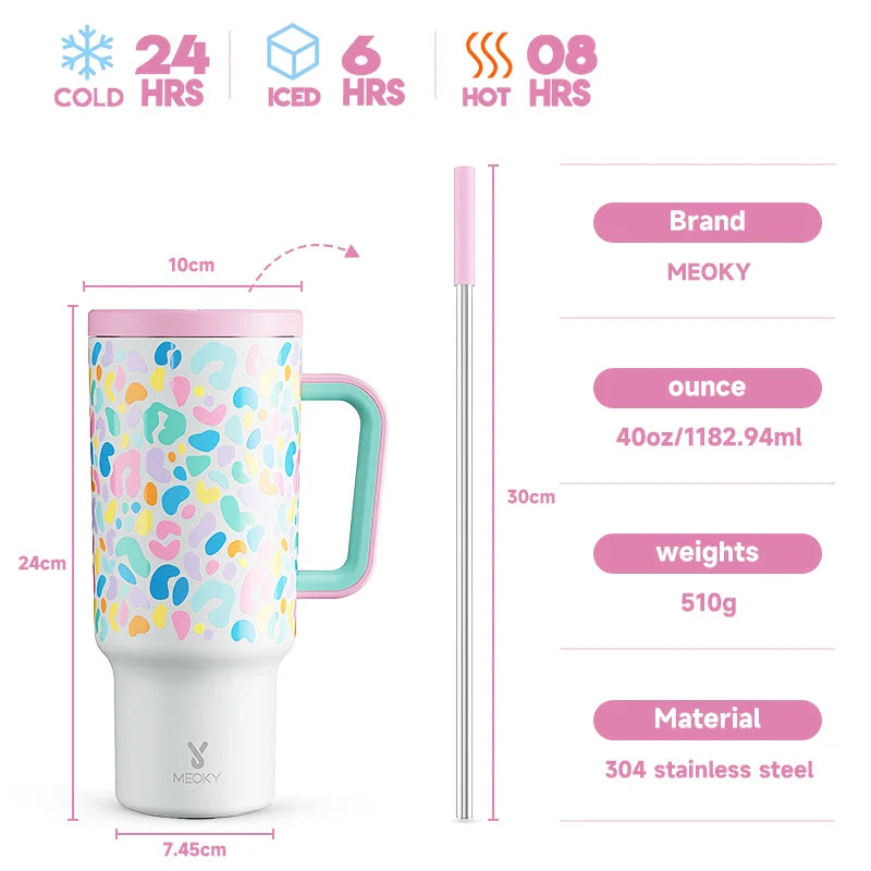 4. Handle and Straw Lid: Equipped with a convenient handle and a straw lid, the insulated water bottle allows you to sip your drink with ease while on the go. The straw is also detachable, allowing you to use the tumbler as a regular cup if preferred.