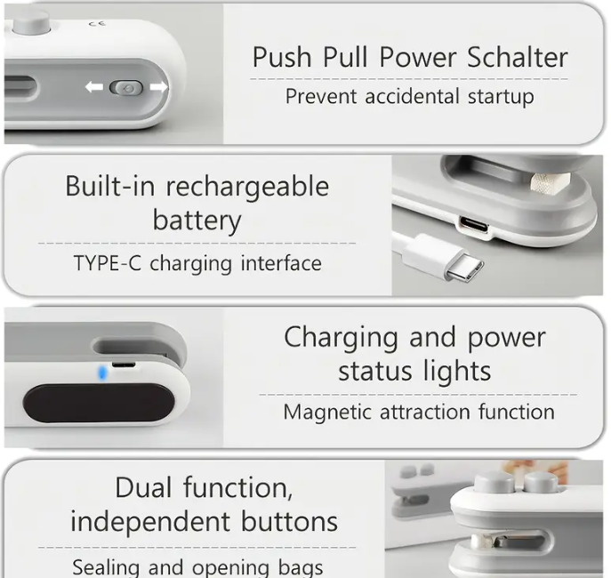 Keep your snacks fresh and sealed with this portable mini bag sealer, designed with a built-in rechargeable battery and magnetic backing for easy storage. Perfect for chips, cookies, and food packaging bags, it’s a must-have for home, travel, and picnics.