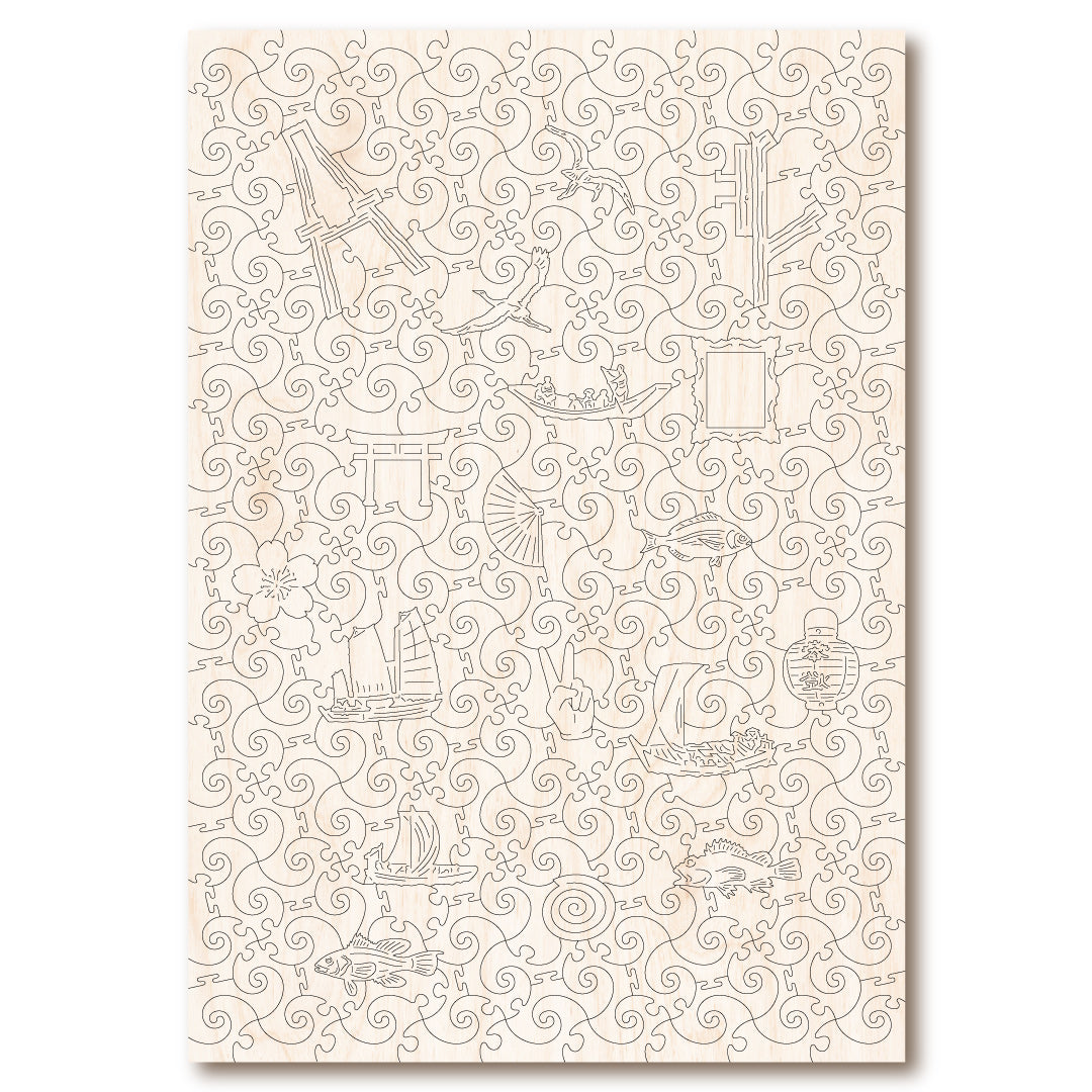 Discover the beauty of traditional Japan with the Naruto Whirlpools wooden jigsaw. Crafted with care, this puzzle features 256 irregular and whimsical shaped pieces that come together to reveal a stunning print by Utugawa Hiroshige from 1853. Immerse yourself in the tranquility of Japanese gardens and shrines as you assemble this exquisite masterpiece.